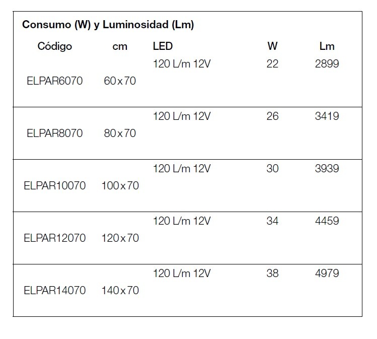 • Colores de iluminación a elegir: Luz fría: 6.000ºK, Luz neutra: 4.000ºK, Luz cálida: 3.000ºK.