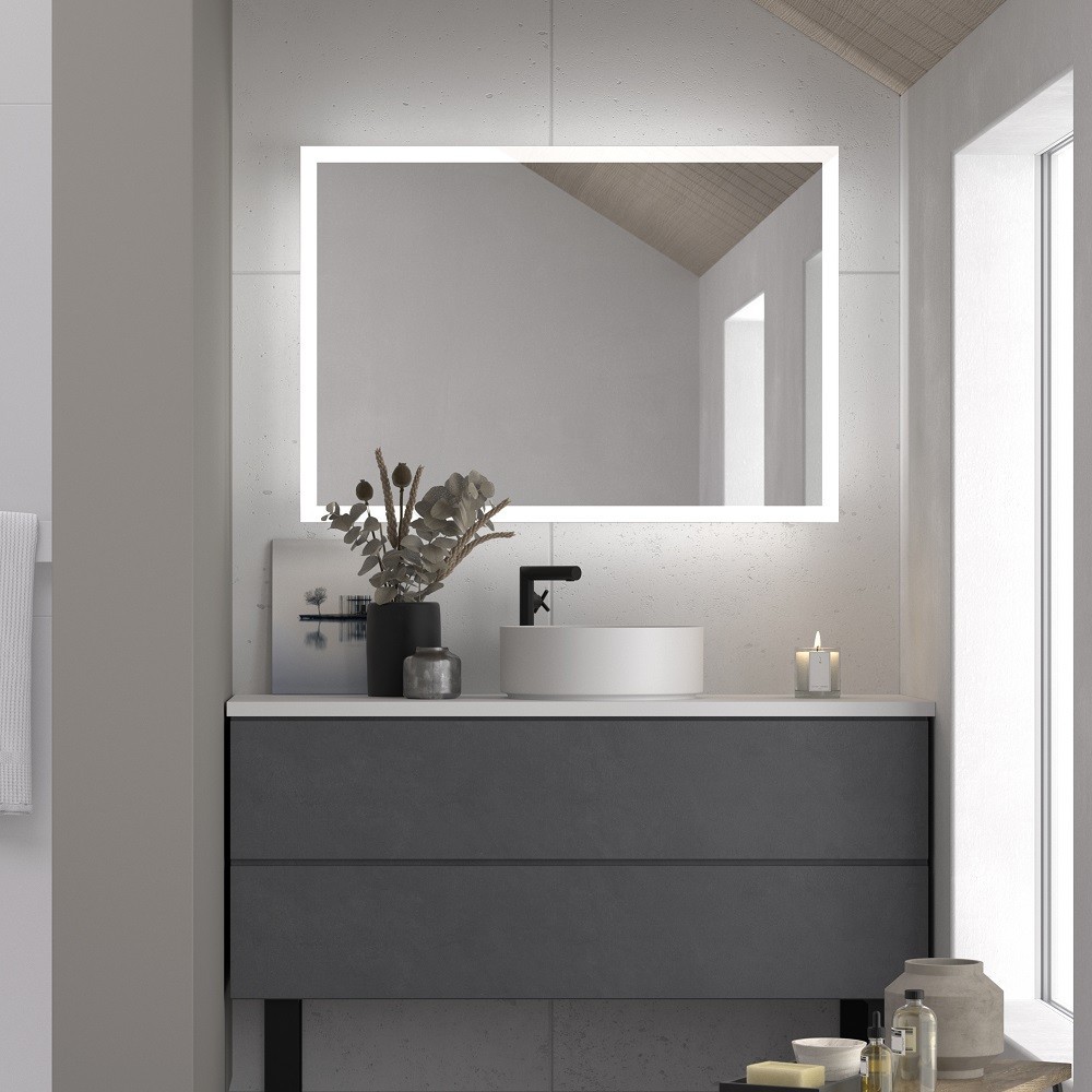 Ilumina tu baño con nuestro espejo rectangular con luz LED integrada, ideal para espacios modernos y minimalistas. Este espejo de baño con iluminación perimetral ofrece una luz uniforme y funcional, perfecta para maquillarte o afeitarte. Su diseño elegante y sin marco realza cualquier ambiente, aportando amplitud y luminosidad. Además, su tecnología de bajo consumo energético lo convierte en una opción eficiente y sostenible. Dale un toque de estilo y funcionalidad a tu hogar con este espejo con luz LED para baño, una solución práctica y decorativa para tu rutina diaria.