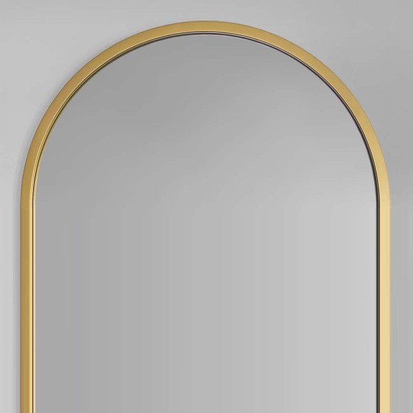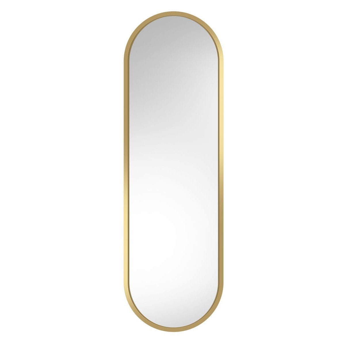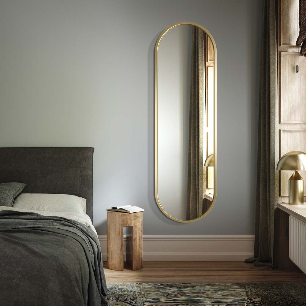 Espejo ovalado de cuerpo entero con marco dorado, ideal para dormitorios, vestidores, recibidores o pasillos con estilo clásico renovado, art déco o contemporáneo. Su forma alargada estiliza la pared y amplía visualmente el espacio, mientras el marco dorado aporta un toque de elegancia sutil. Perfecto para aportar luz y sofisticación a interiores con tonos oscuros o neutros. Este espejo decorativo con diseño vertical es una opción funcional y estética para proyectos de interiorismo con carácter y refinamiento.