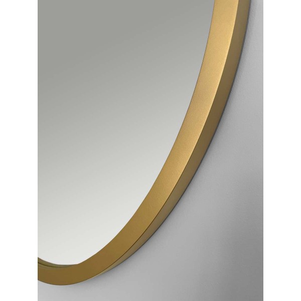 Marco de MDF hidrófugo, lacado con barniz dorado resistente a la humedad.