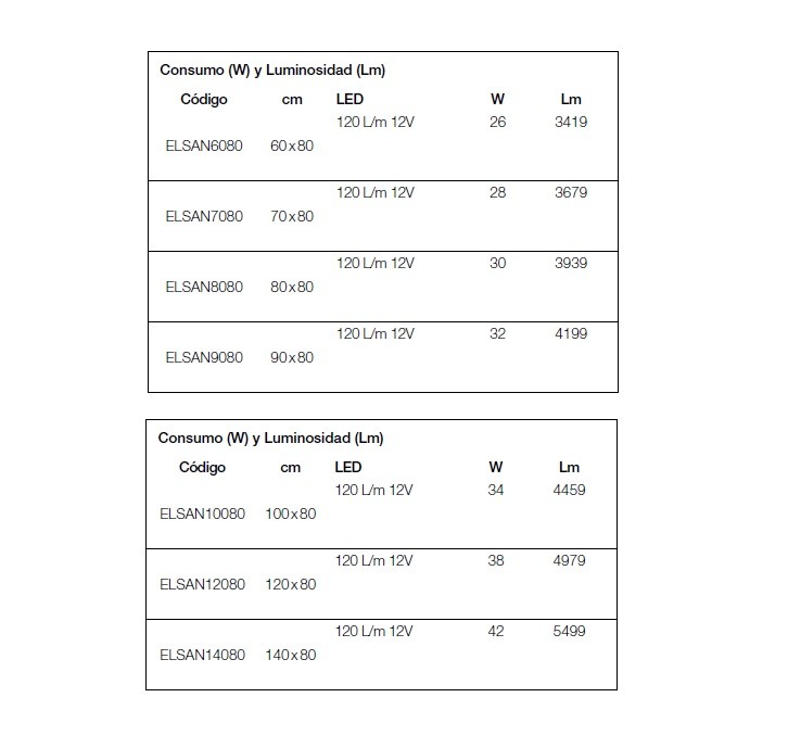 • Colores de iluminación a elegir: Luz fría: 6.000ºK, Luz neutra: 4.000ºK, Luz cálida: 3.000ºK.
