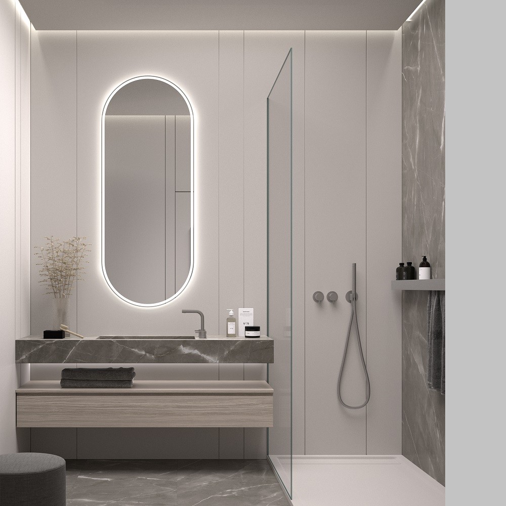 Este espejo ovalado con iluminación LED perimetral es la opción ideal para baños contemporáneos. Su forma alargada y vertical aporta una estética suave y estilizada, perfecta para espacios reducidos o ambientes de diseño sofisticado. La luz LED integrada proporciona una iluminación uniforme, práctica y agradable para el uso diario. Fabricado en cristal de alta calidad, este espejo decorativo moderno combina funcionalidad, diseño minimalista y elegancia atemporal. Ideal para proyectos de interiorismo que buscan armonía visual y una atmósfera luminosa y relajada.