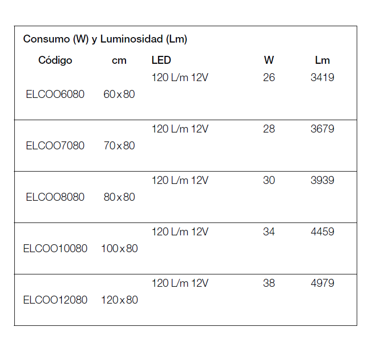 - Colores de iluminación a elegir: Luz fría: 6.000ºK, Luz neutra: 4.000ºK, Luz cálida: 3.000ºK.