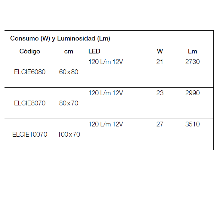 • Colores de iluminación a elegir: Luz fría: 6.000ºK, Luz neutra: 4.000ºK, Luz cálida: 3.000ºK.