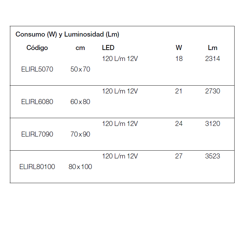 • Colores de iluminación a elegir: Luz fría: 6.000ºK, Luz neutra: 4.000ºK, Luz cálida: 3.000ºK.