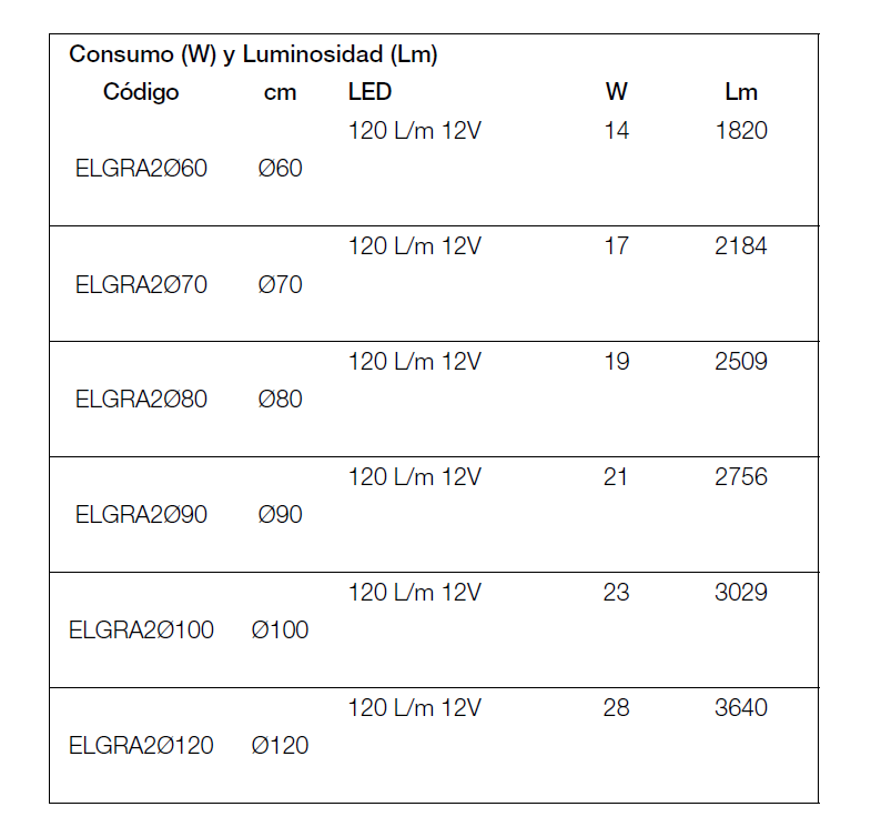 - Colores de iluminación a elegir: Luz fría: 6.000ºK, Luz neutra: 4.000ºK, Luz cálida: 3.000ºK.