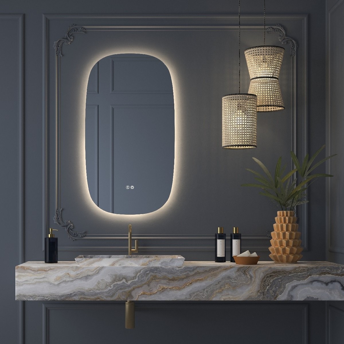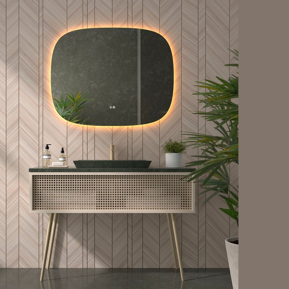 Este espejo con forma ovalada sin marco y retroiluminación LED es la elección ideal para baños de estilo moderno, industrial o minimalista. Su contorno suave y asimétrico añade dinamismo visual, mientras que la iluminación perimetral LED genera una atmósfera cálida y envolvente. Fabricado sin marco, se integra de forma sutil en paredes claras u oscuras, aportando amplitud y carácter. Este espejo decorativo iluminado combina funcionalidad y diseño contemporáneo, perfecto para quienes buscan un toque vanguardista y elegante en su espacio de baño.