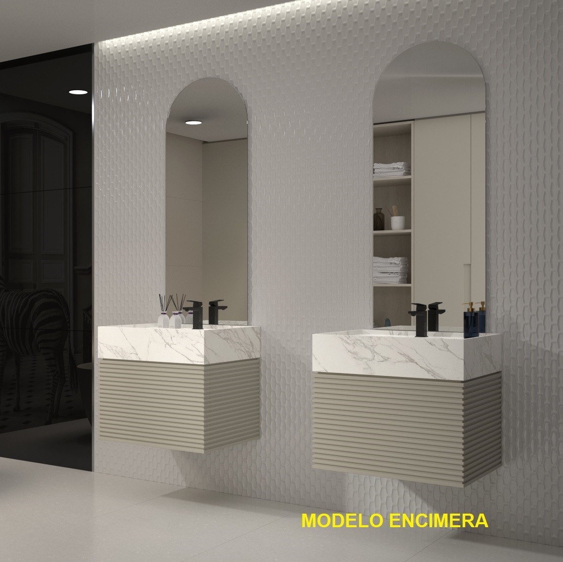 El espejo también está disponible con luz led integrada y con múltiples accesorios a elegir.