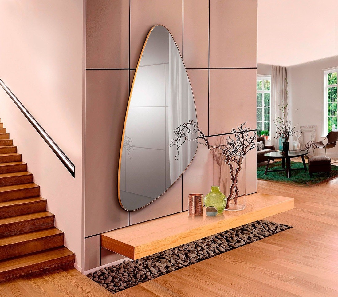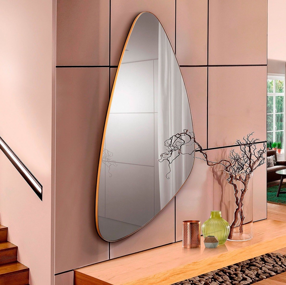 Espejo Asimétrico Grande Marco Dorado Para Recibidor