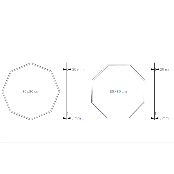 Este espejo octogonal combina geometría precisa con una estética minimalista, ideal para interiores modernos o de inspiración escandinava. Su forma de ocho lados ofrece un equilibrio visual único, rompiendo con las líneas convencionales sin perder armonía. Es perfecto para dar carácter a baños, tocadores o entradas, aportando un toque de diseño elegante y funcional. Su superficie limpia refleja la luz y amplía visualmente el espacio, mientras que su perfil sin marco refuerza su estilo contemporáneo. Una opción sofisticada y original para quienes buscan distinción y simetría con un punto de audacia.