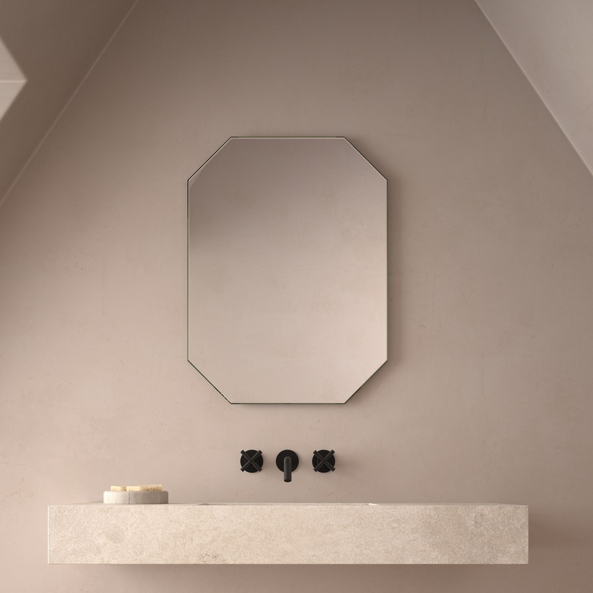 Este espejo de forma octogonal ofrece una estética geométrica y elegante, ideal para quienes buscan una pieza decorativa con carácter arquitectónico. El biselado limpio de sus esquinas suaviza la rigidez del cuadrado clásico, aportando sofisticación sin perder funcionalidad. Perfecto para baños contemporáneos, espacios de estilo mid-century o interiores con líneas puras.