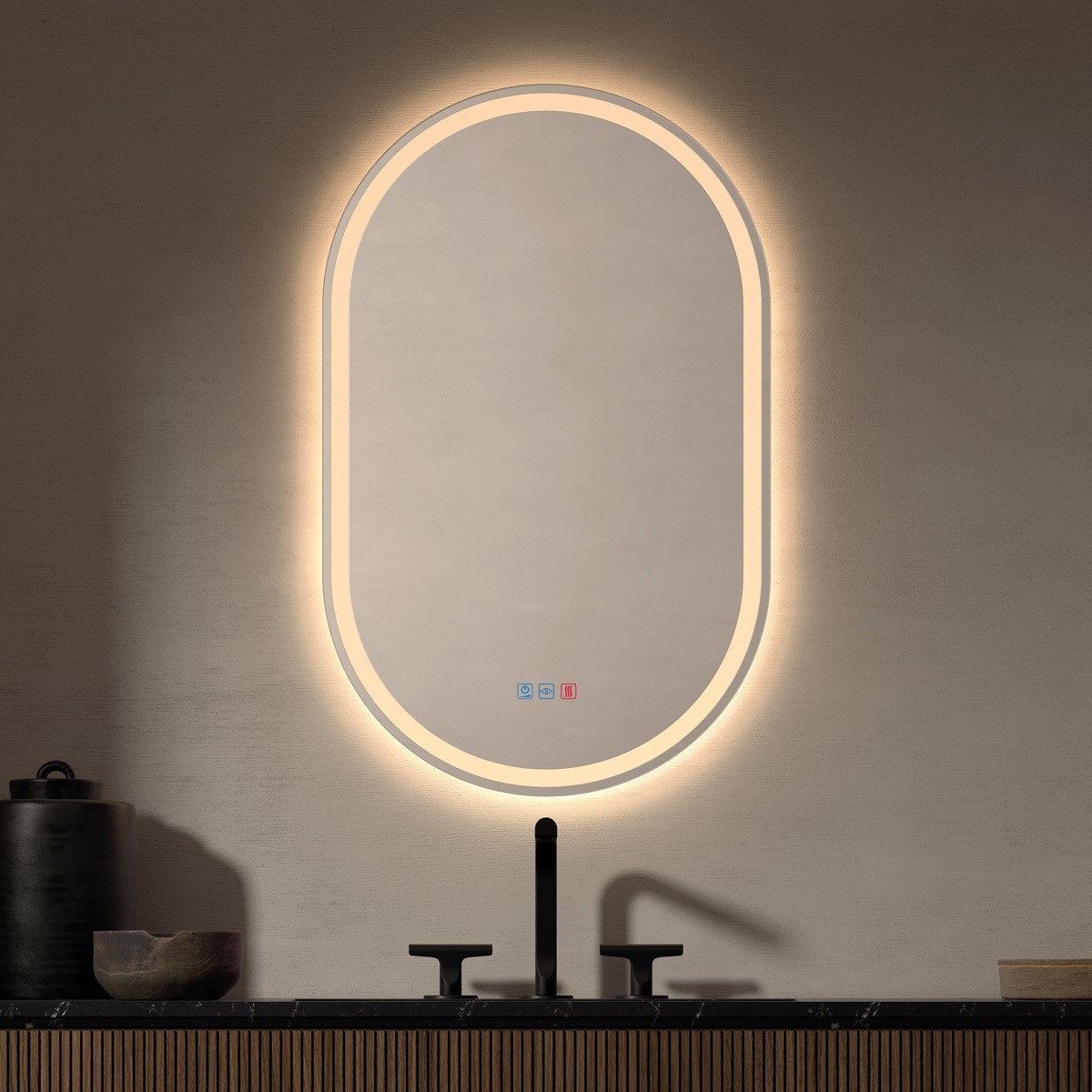 Este espejo ovalado con luz led para baño es una fusión perfecta de funcionalidad y diseño contemporáneo. Su forma vertical estilizada, unida a la banda arenada frontal con iluminación LED blanca, ofrece una luz suave y envolvente ideal para la rutina diaria. El diseño sin marco y los controles táctiles con función antivaho lo convierten en una pieza moderna, eficiente y visualmente ligera. Perfecto para baños elegantes y espacios de estilo nórdico o minimalista.