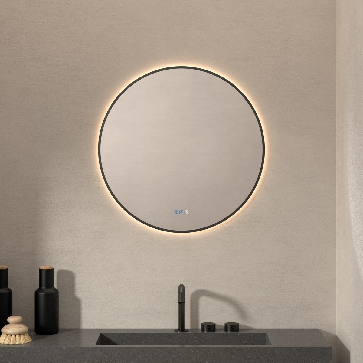 Este espejo redondo retroiluminado con contorno negro para baño destaca por su diseño moderno y funcional. La iluminación LED trasera cálida crea un efecto de halo elegante que realza la atmósfera del baño, mientras que el marco negro pintado aporta contraste y carácter, ideal para interiores minimalistas o industriales. Con sistema antivaho y controles táctiles, este espejo LED con marco negro combina tecnología y estilo en una pieza imprescindible para baños contemporáneos.