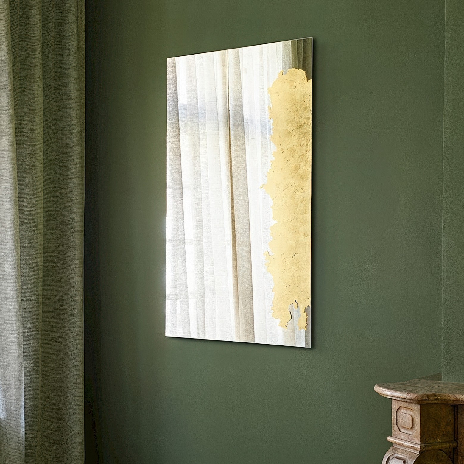 El espejo Ornato es una obra de arte funcional que combina elegancia y diseño artesanal. Su forma rectangular se realza con una aplicación manual de hojas metálicas doradas que crean un patrón natural único en cada pieza. La combinación entre el brillo del espejo y la textura dorada aporta sofisticación y un toque contemporáneo a cualquier espacio. Perfecto para interiores modernos o clásicos, Ornato transforma paredes en puntos focales llenos de estilo y personalidad. Un espejo atemporal y exclusivo.