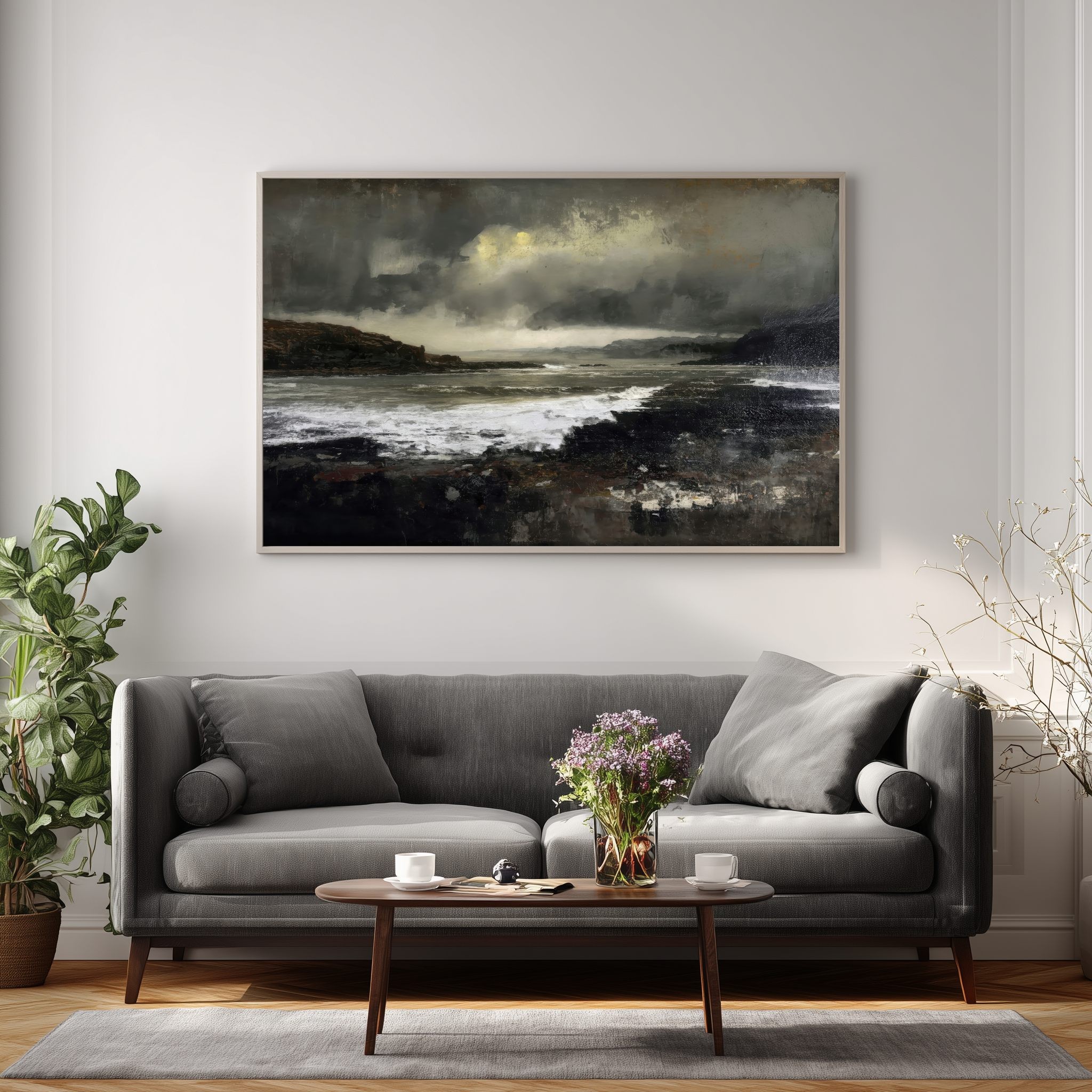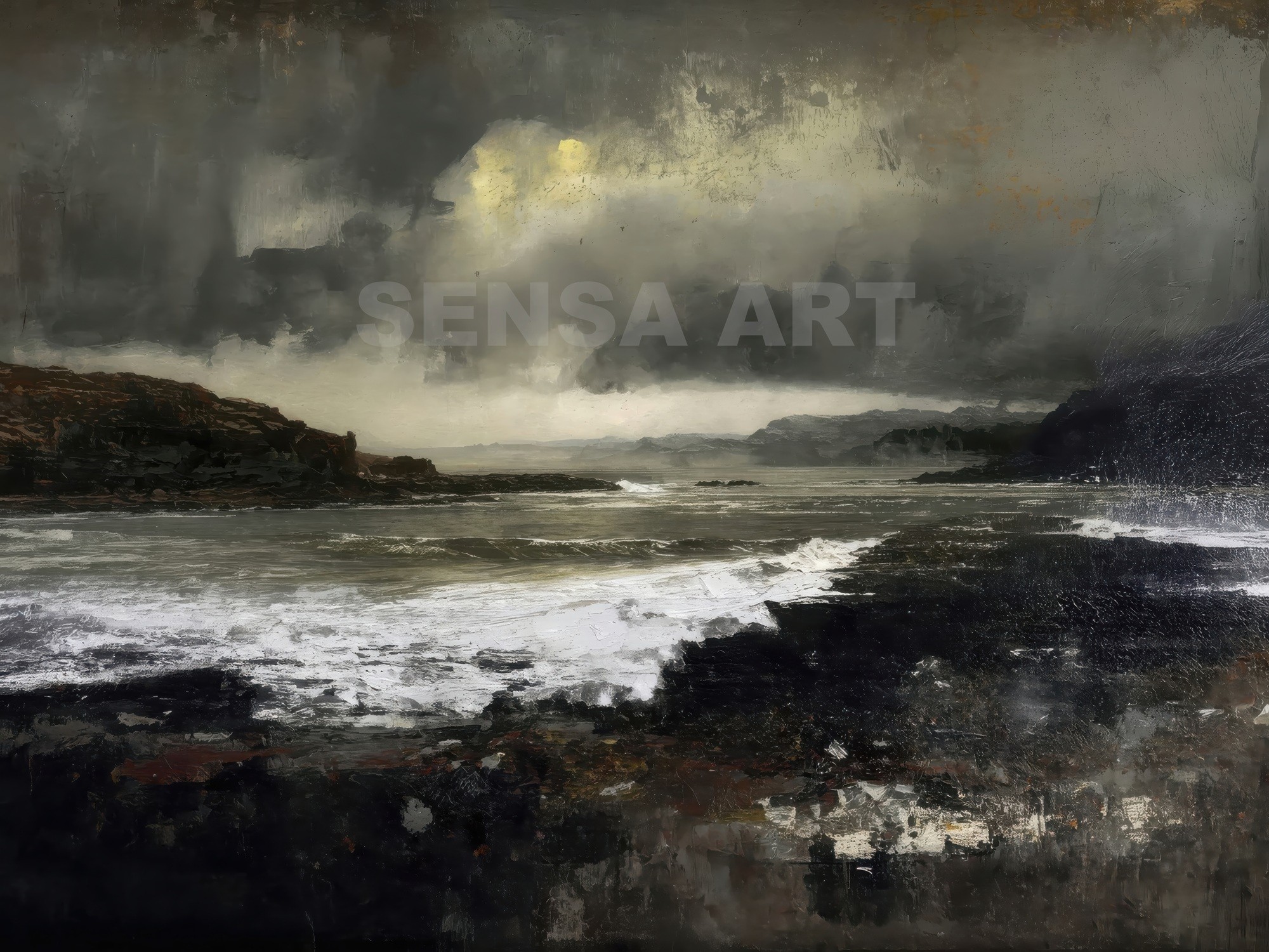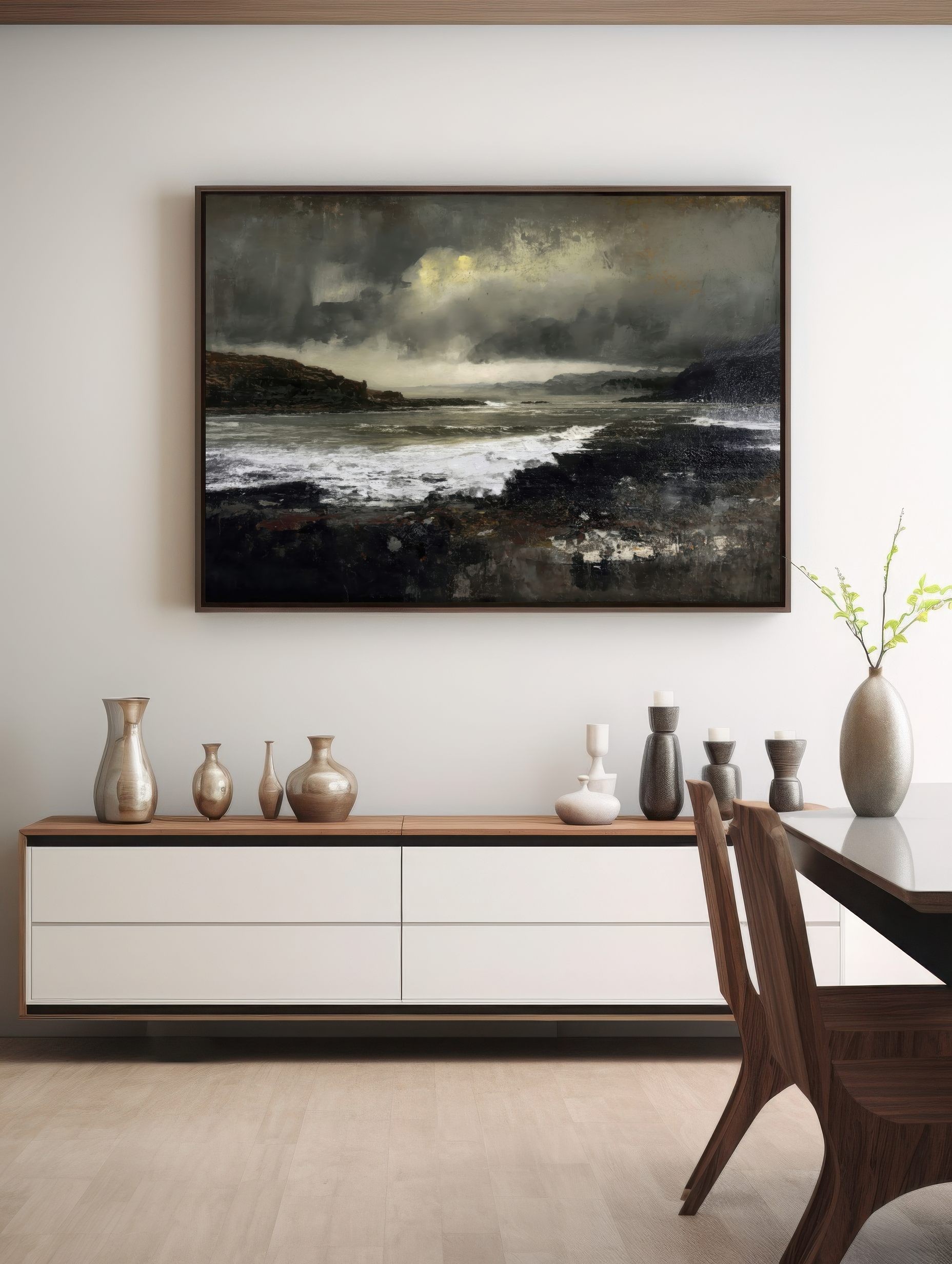 El cuadro abstracto Marea Oscura representa la fuerza del océano en su estado más salvaje y poético. Con una combinación de tonos grises, marrones y matices dorados, esta obra captura el dramatismo del mar bajo un cielo tormentoso. Las pinceladas densas al óleo y la textura rugosa evocan el movimiento de las olas y la energía de la naturaleza. Perfecto para interiores modernos, industriales o minimalistas, este cuadro aporta profundidad visual, elegancia y una poderosa sensación de calma dentro del caos natural.