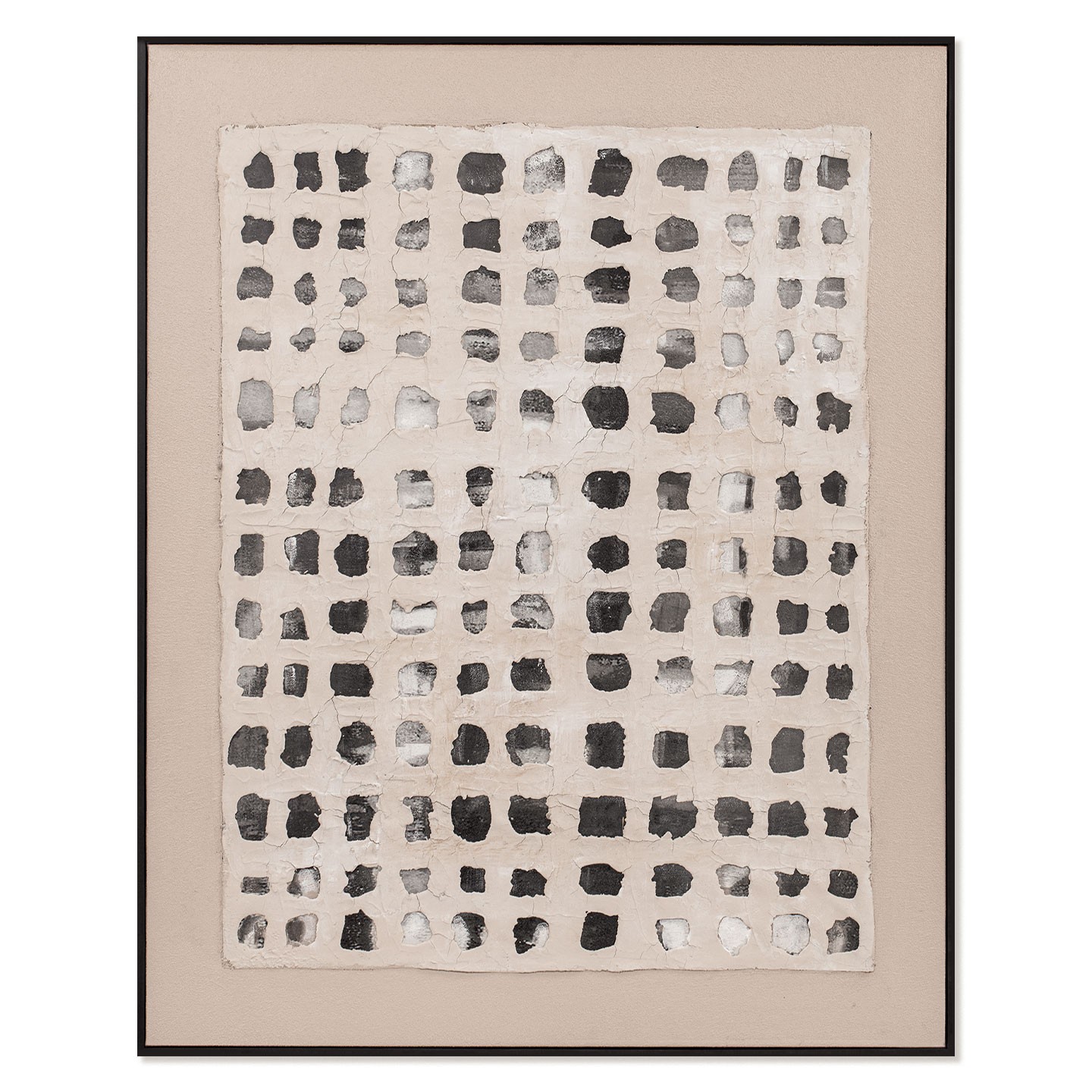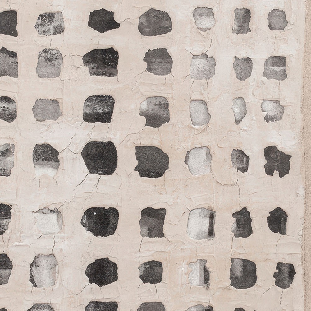 El cuadro decorativo Belize presenta un diseño abstracto de patrón cuadriculado en tonos neutros como beige, gris y blanco. Una decoración tallada, aplicada sobre la pintura acrílica, crea un original juego de luces y sombras. El papel amatl, producido en Jalisco desde la época precolombina, es la inspiración para el refinado inserto de esta obra.