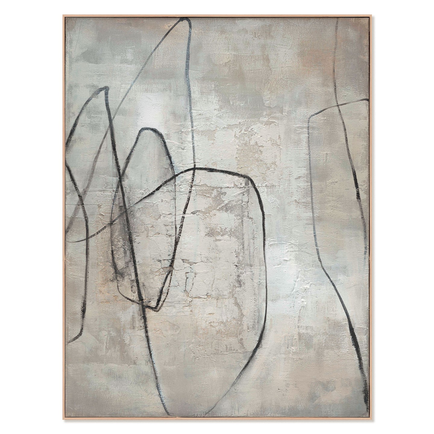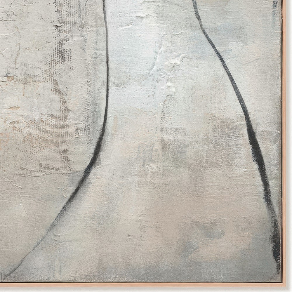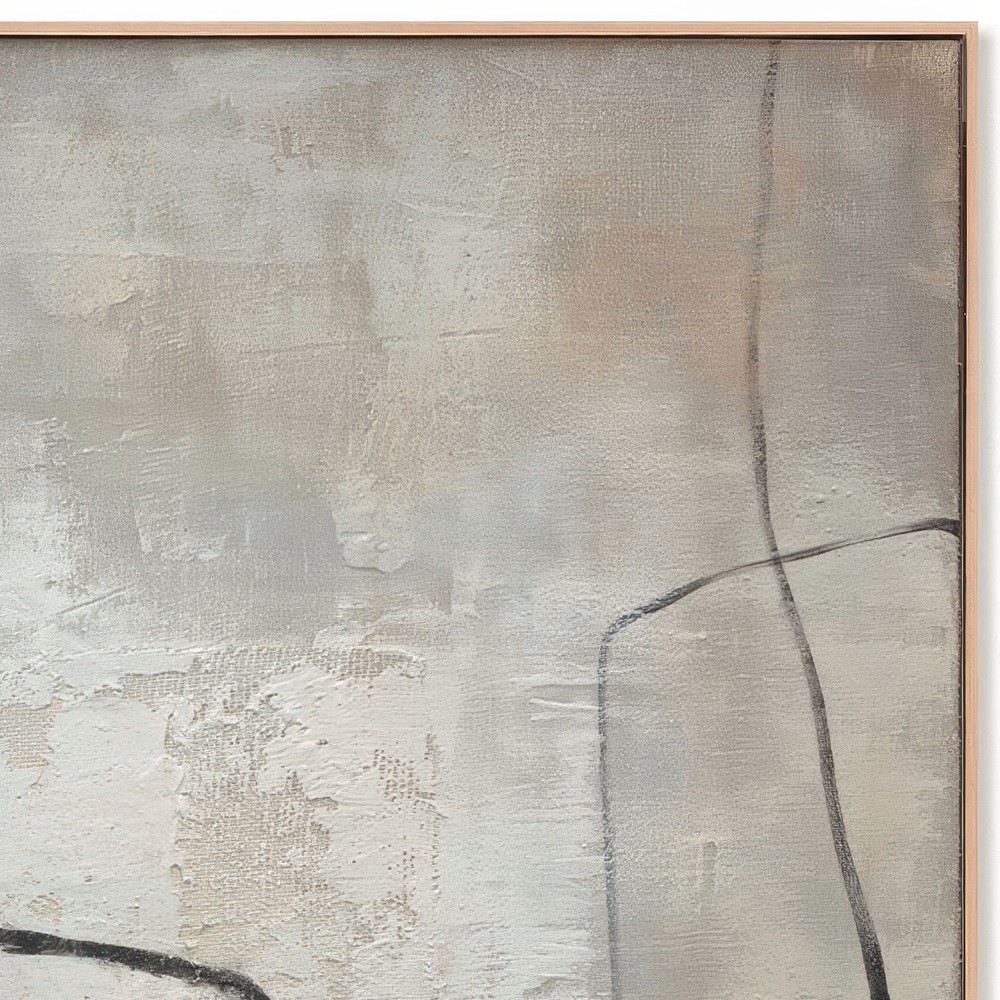 Este cuadro decorativo abstracto Scribble presenta un diseño minimalista en tonos neutros como gris y beige, con líneas negras fluidas que añaden dinamismo y profundidad. Su textura sutil y colores suaves lo convierten en una pieza versátil, ideal para decoraciones modernas, escandinavas o minimalistas.