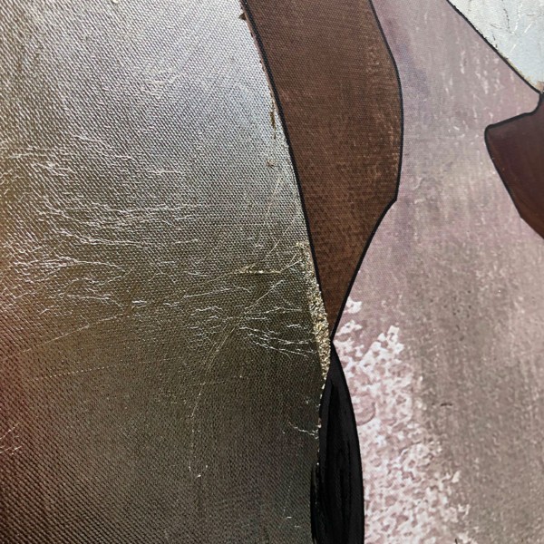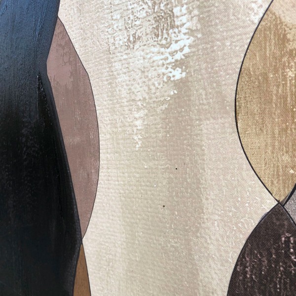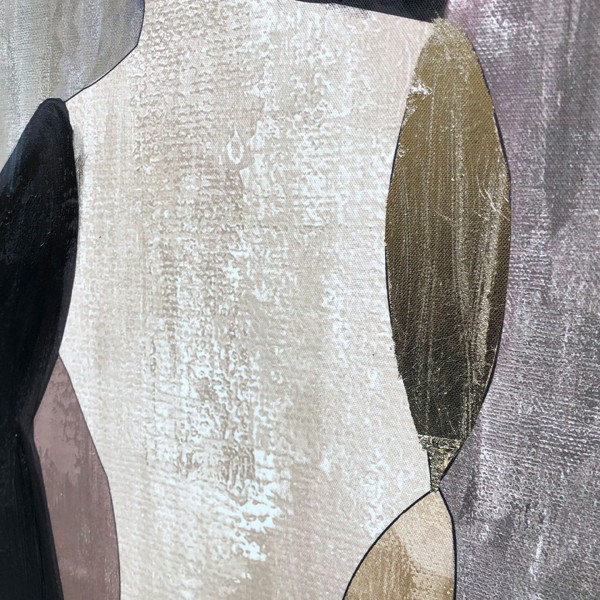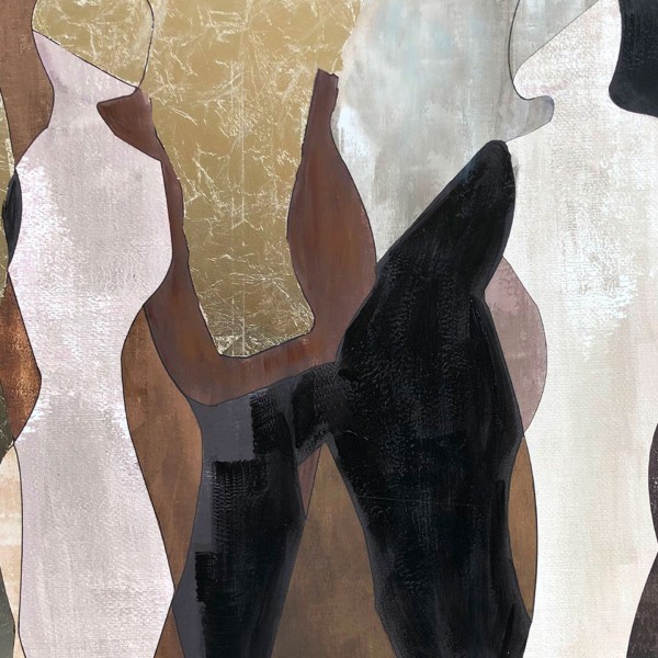 El cuadro abstracto Incontro destaca por sus siluetas orgánicas y una paleta de tonos tierra como marrón, beige, dorado y negro. Su diseño elegante y moderno aporta textura y profundidad, ideal para decoraciones contemporáneas o sofisticadas.