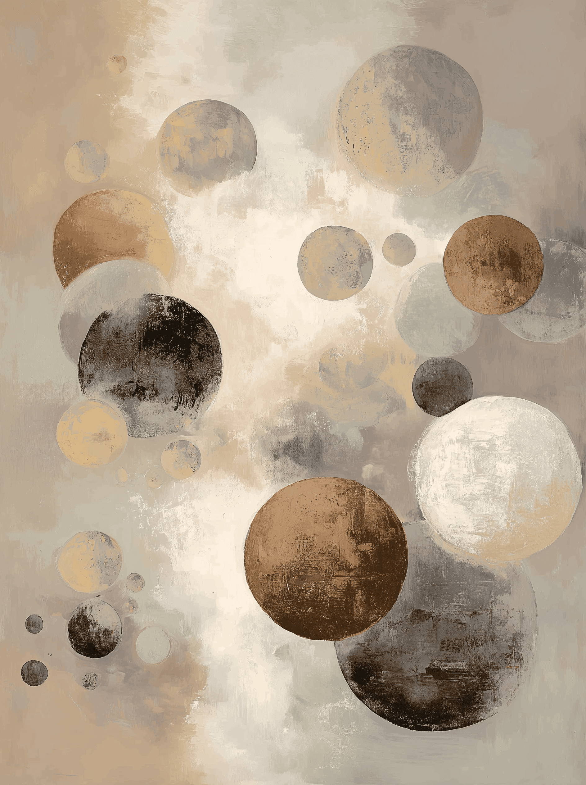 Este cuadro abstracto cósmico representa el nacimiento de planetas, con formas circulares en tonos neutros de beige, marrón, gris y blanco que evocan cuerpos celestes en formación. Su composición geométrica transmite movimiento, energía y armonía, creando una atmósfera moderna y sofisticada. Ideal para decoración contemporánea en salones, oficinas o dormitorios, esta obra combina la fuerza del universo con la elegancia del arte abstracto. Una pieza única que conecta la creatividad humana con el misterio del cosmos, aportando estilo y profundidad a cualquier espacio.