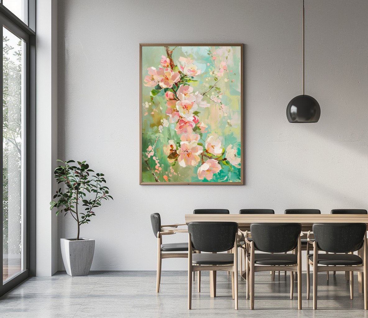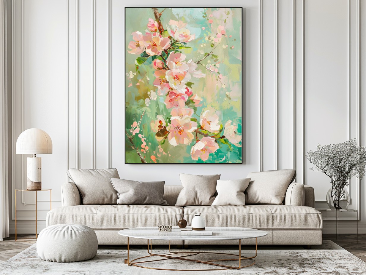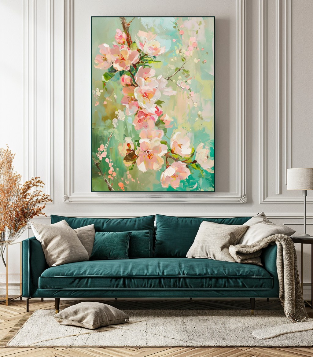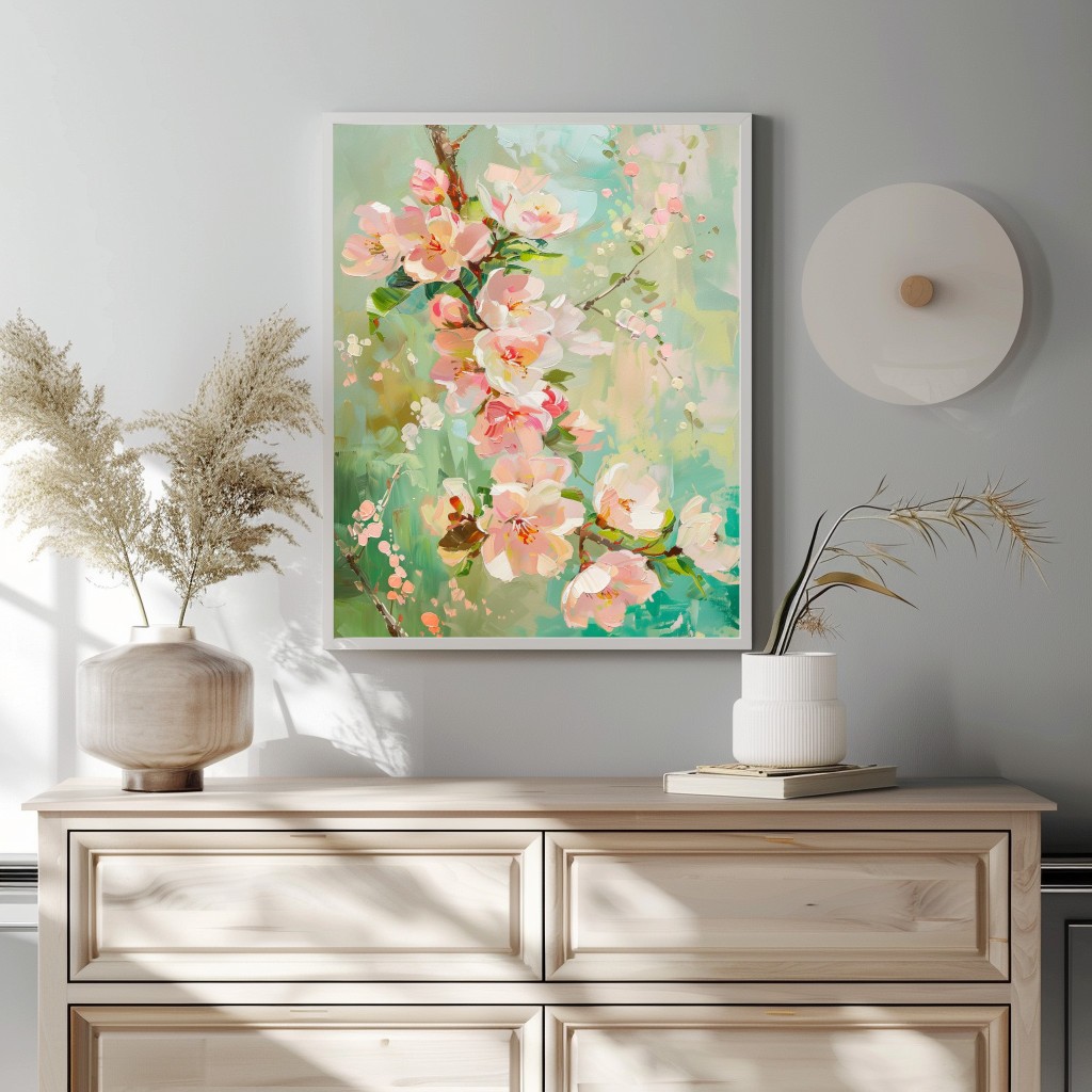 Este cuadro captura la delicadeza de las flores de cerezo en plena floración, con tonos suaves de rosa y toques de blanco y verde. Pintado con una técnica impresionista que da vida y movimiento a cada pétalo, es perfecto para agregar un toque de frescura y serenidad a cualquier ambiente. Ideal para espacios que buscan transmitir paz y belleza natural.