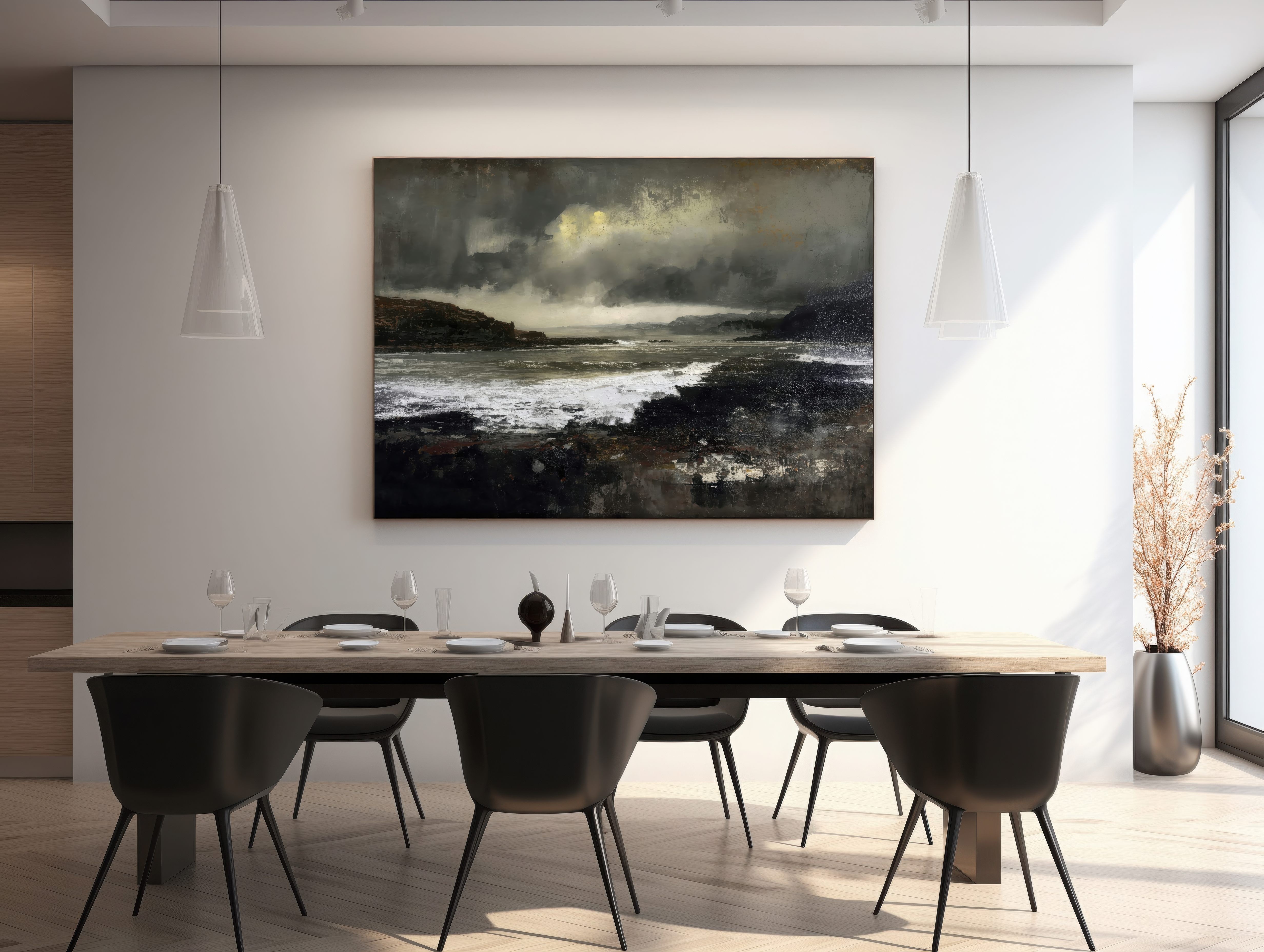 El cuadro abstracto Marea Oscura representa la fuerza del océano en su estado más salvaje y poético. Con una combinación de tonos grises, marrones y matices dorados, esta obra captura el dramatismo del mar bajo un cielo tormentoso. Las pinceladas densas al óleo y la textura rugosa evocan el movimiento de las olas y la energía de la naturaleza. Perfecto para interiores modernos, industriales o minimalistas, este cuadro aporta profundidad visual, elegancia y una poderosa sensación de calma dentro del caos natural.