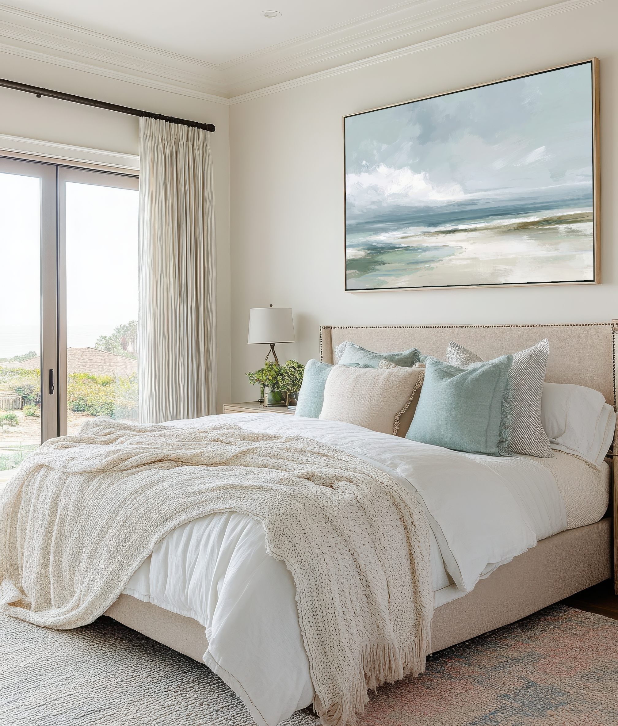 Cuadro Para Dormitorio Paisaje Costero en Tonos Azules y Arena