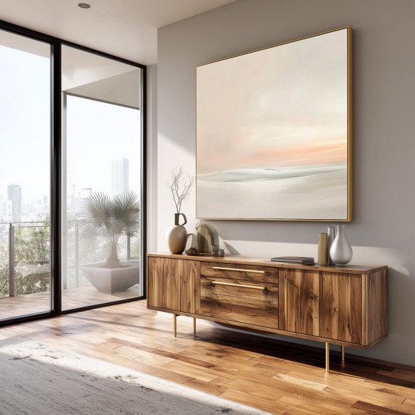 Perfecto para interiores contemporáneos, este cuadro moderno en tonos neutros encaja especialmente bien en salones elegantes, dormitorios relajantes o espacios tipo Japandi, aportando luminosidad y sofisticación sin sobrecargar el ambiente.