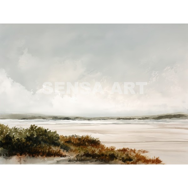 Cuadro Paisaje Tranquilo en Acuarela en Tonos Suaves y Neblina