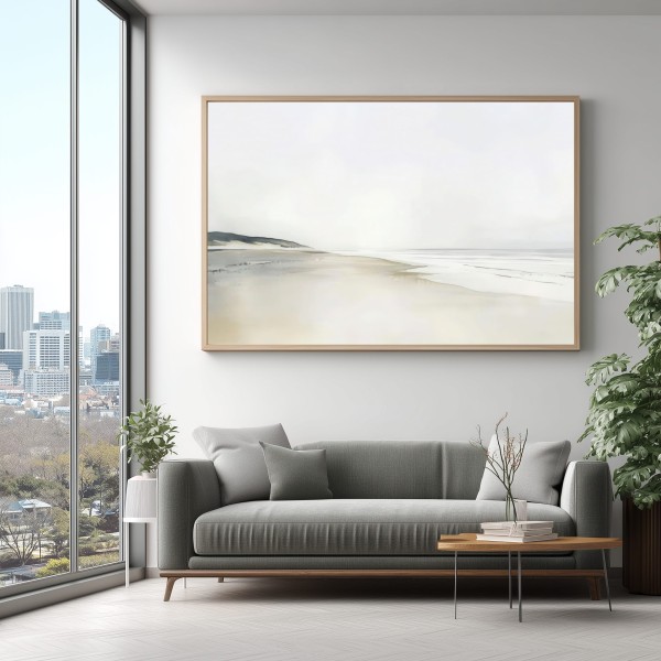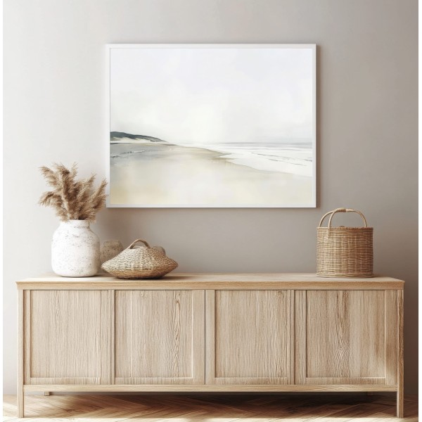 Cuadro Playa Minimalista Paisaje Costero en Tonos Neutros