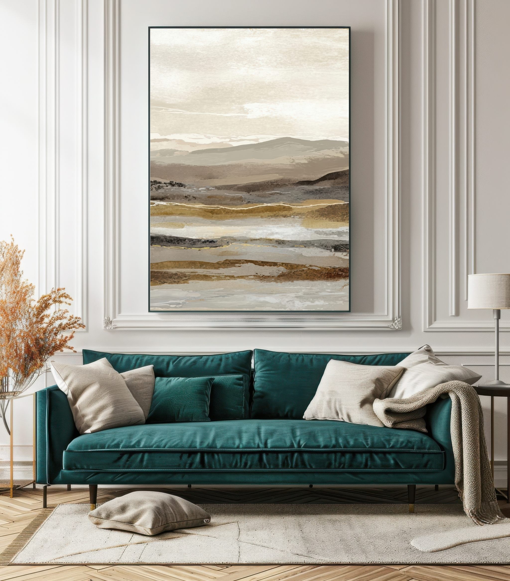 Este cuadro abstracto de paisaje en tonos tierra combina matices de beige, arena y gris con pinceladas sutiles que evocan la serenidad de un horizonte natural. Ideal para interiores modernos o de estilo Japandi, transmite equilibrio y calma. Su composición en capas aporta textura y profundidad visual, perfecta para salones, dormitorios o espacios de trabajo. Una obra contemporánea que captura la esencia de la naturaleza en clave minimalista, creando una atmósfera cálida y elegante en cualquier ambiente decorativo.