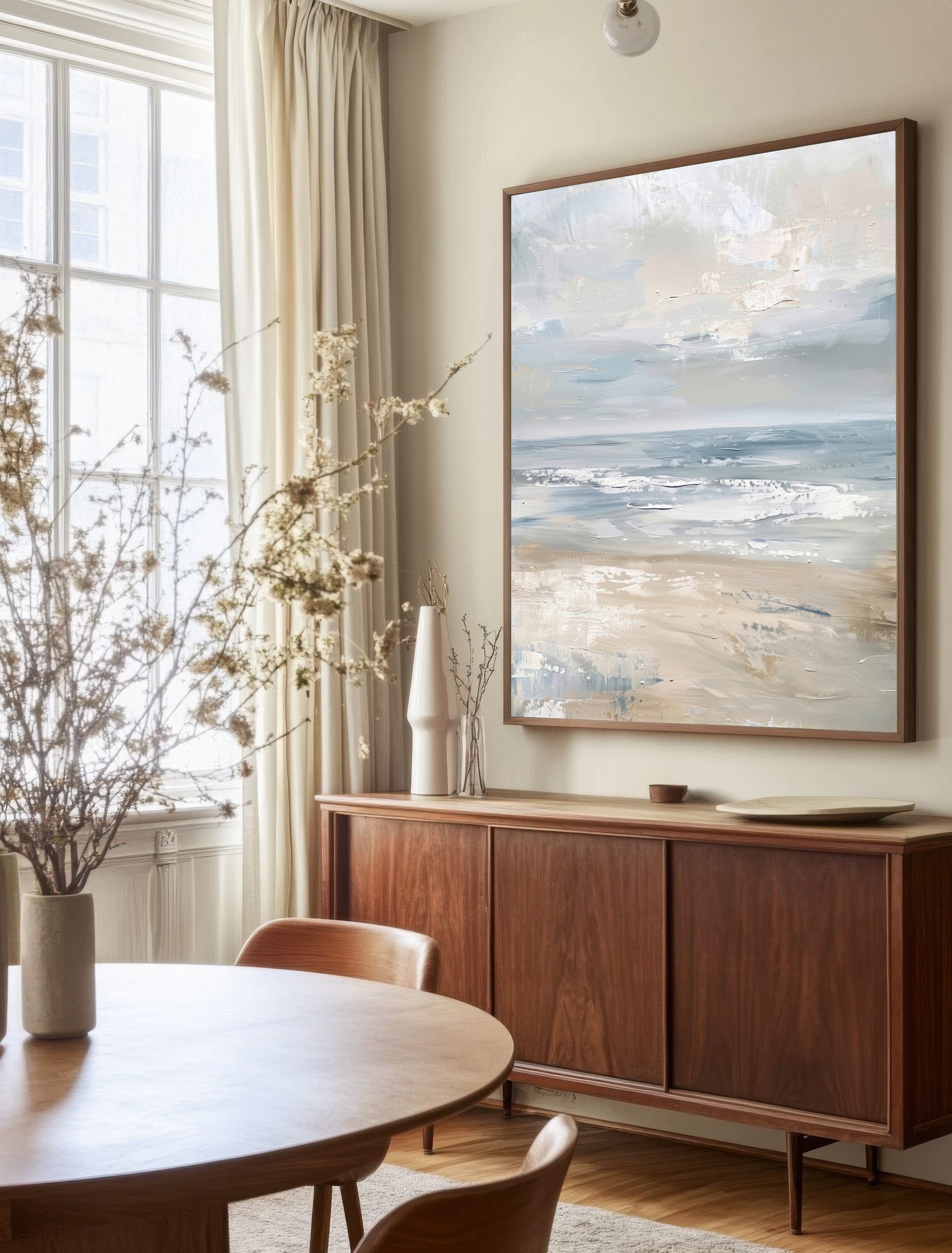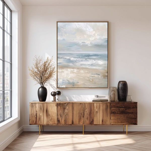 Transforma tu espacio con nuestro cautivador cuadro Coastal Elegance. Creado con maestría, este lienzo transporta la serenidad de la naturaleza a tu hogar. Los tonos tranquilos y las formas evocadoras dan vida a un paisaje único que estimula la imaginación. Su diseño abstracto permite una interpretación personal, convirtiéndolo en una pieza única y significativa. La impresión de alta calidad en lienzo garantiza durabilidad y nitidez, mientras que el bastidor de madera aporta un toque elegante. Añade una dosis de sofisticación y energía positiva a tu decoración con una obra de arte que eleva cualquier ambiente.