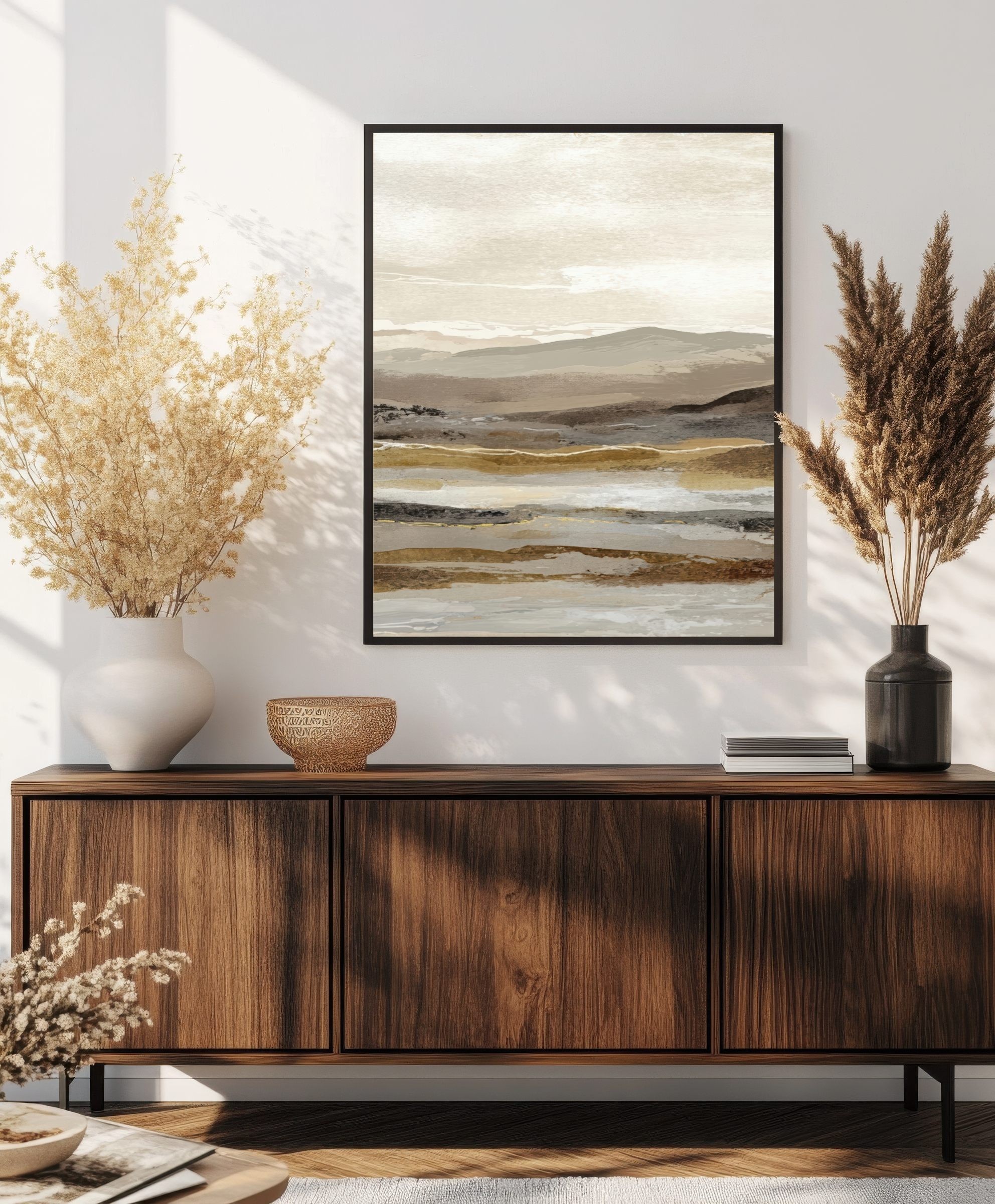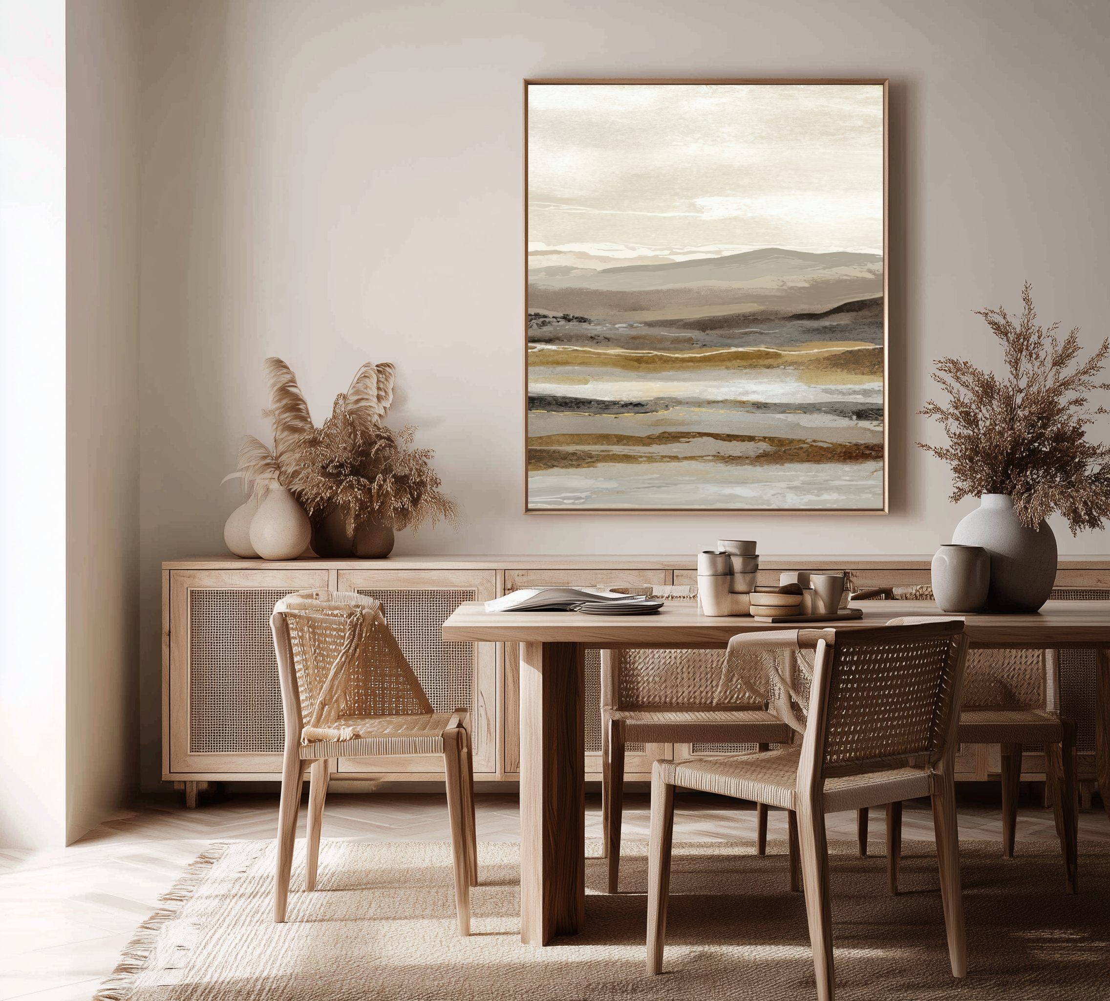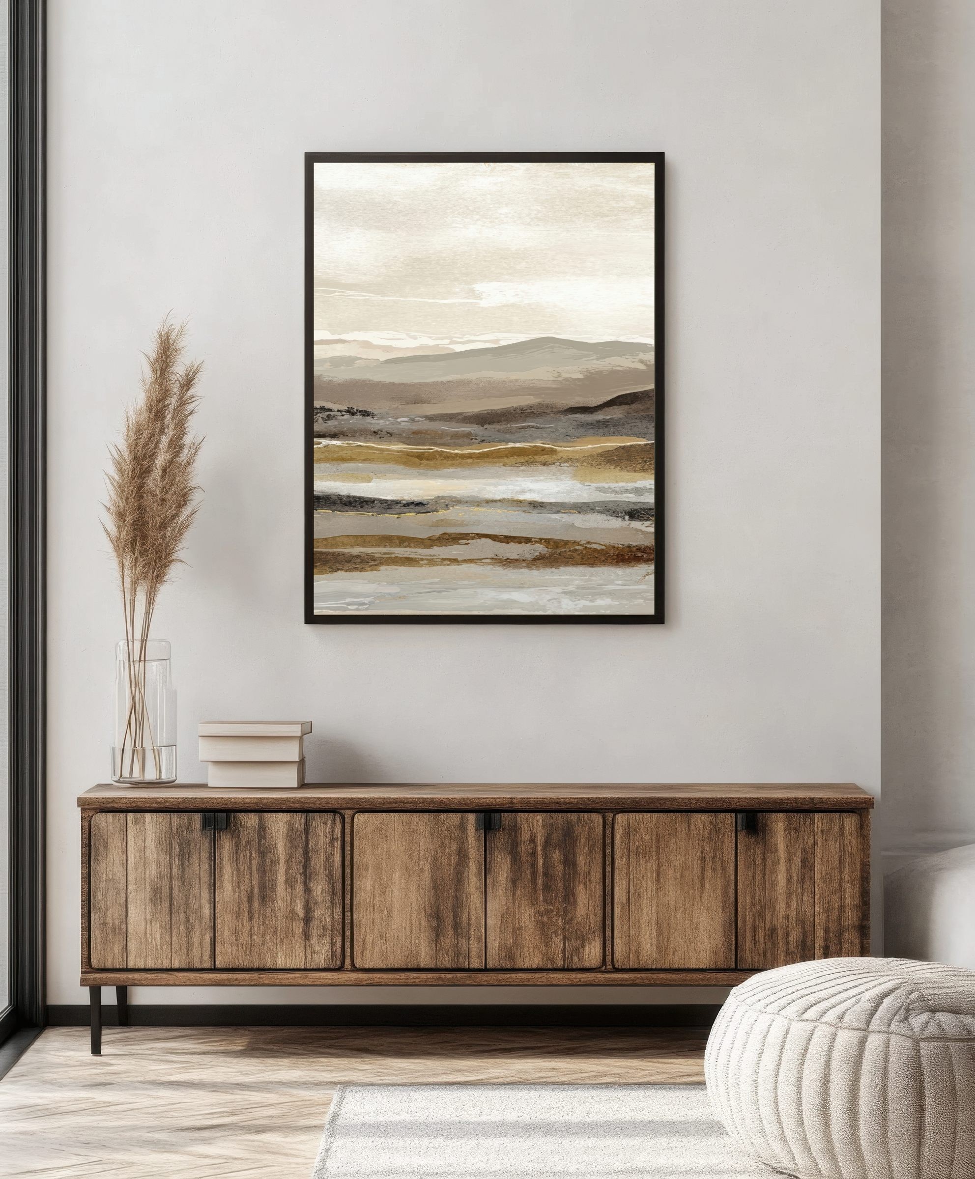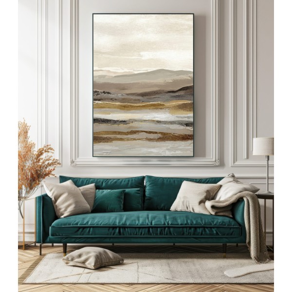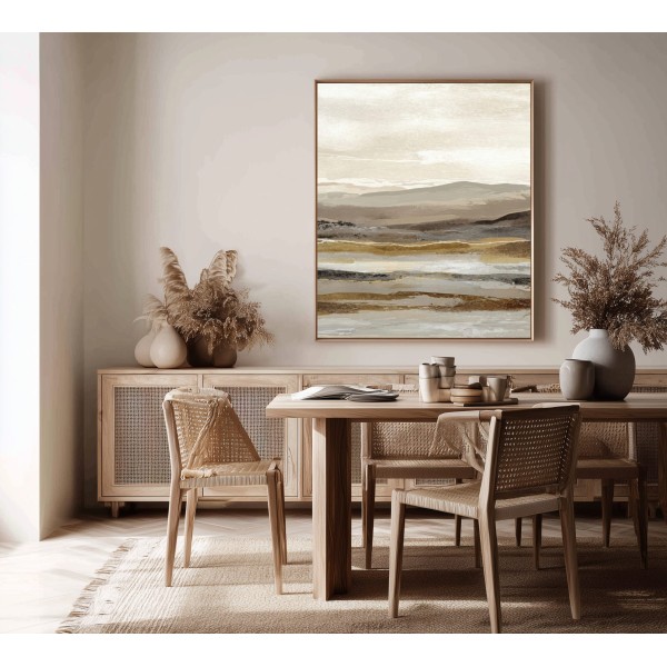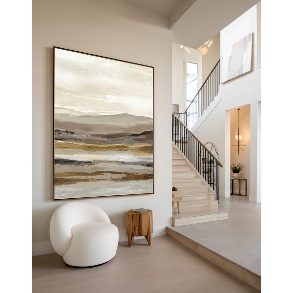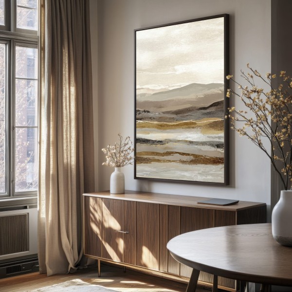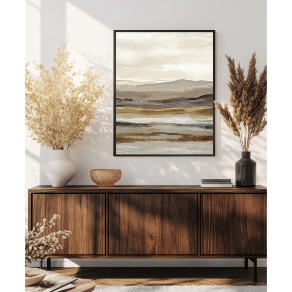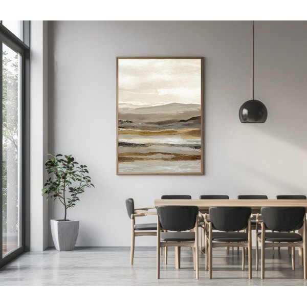 Este cuadro abstracto de paisaje en tonos tierra combina matices de beige, arena y gris con pinceladas sutiles que evocan la serenidad de un horizonte natural. Ideal para interiores modernos o de estilo Japandi, transmite equilibrio y calma. Su composición en capas aporta textura y profundidad visual, perfecta para salones, dormitorios o espacios de trabajo. Una obra contemporánea que captura la esencia de la naturaleza en clave minimalista, creando una atmósfera cálida y elegante en cualquier ambiente decorativo.