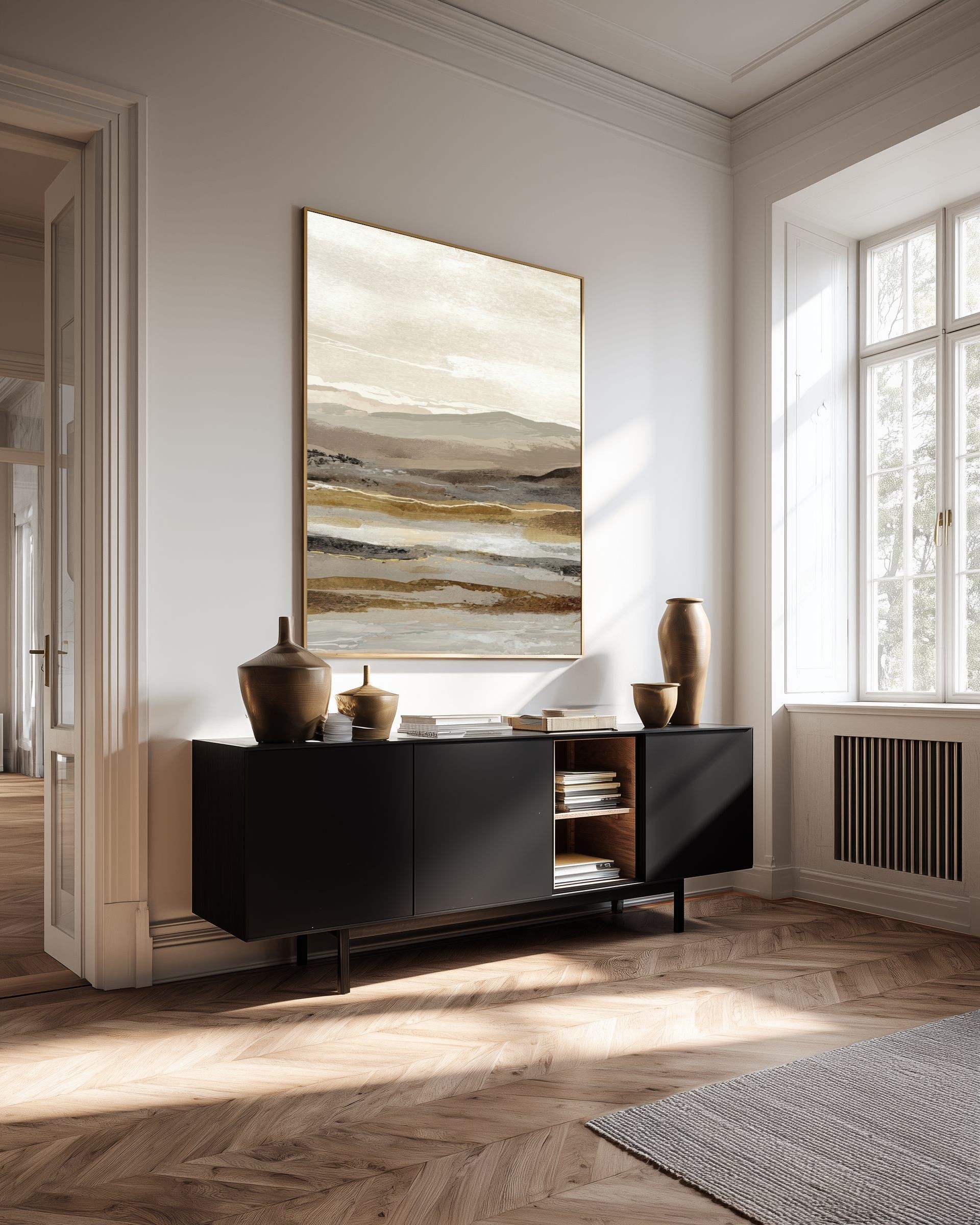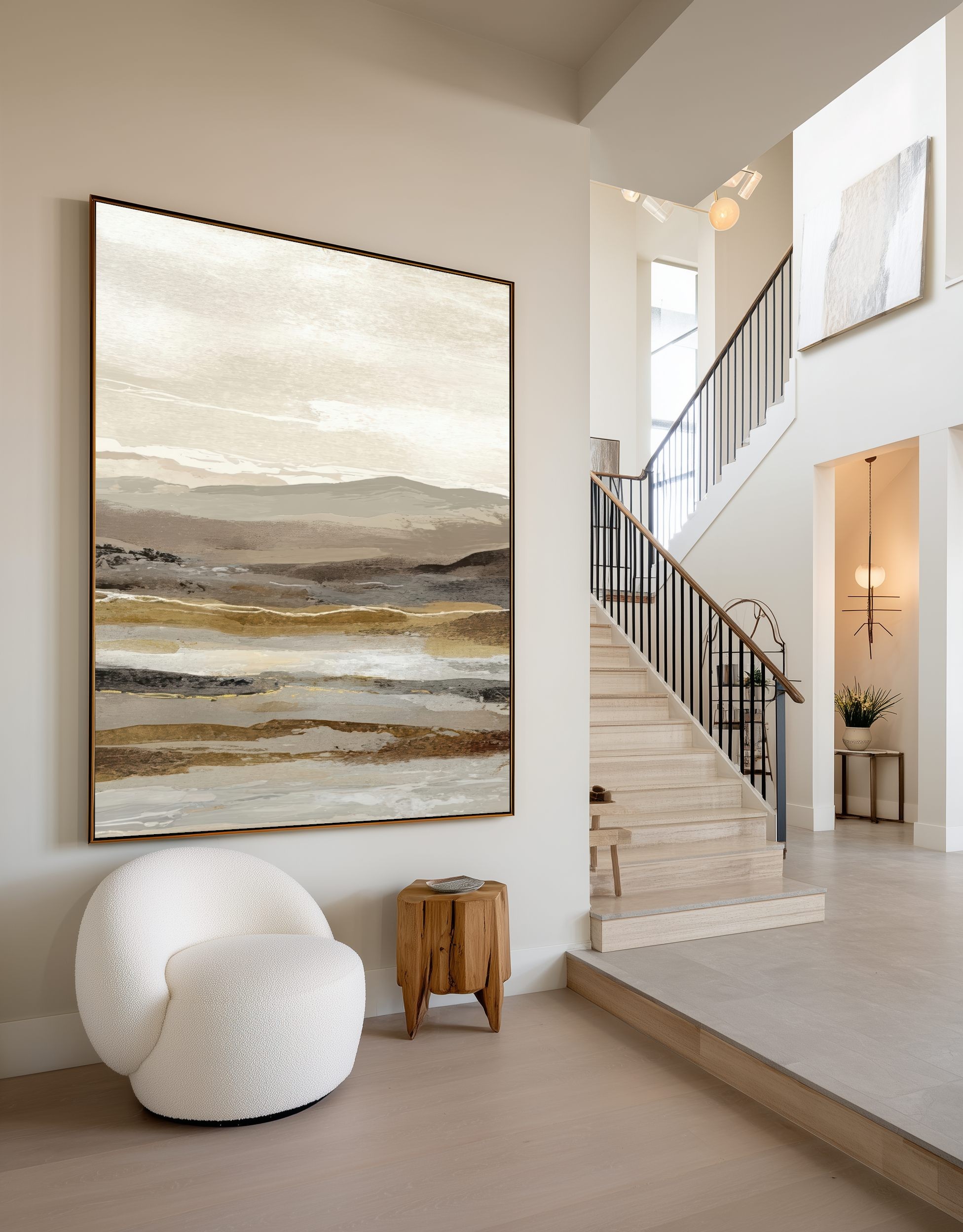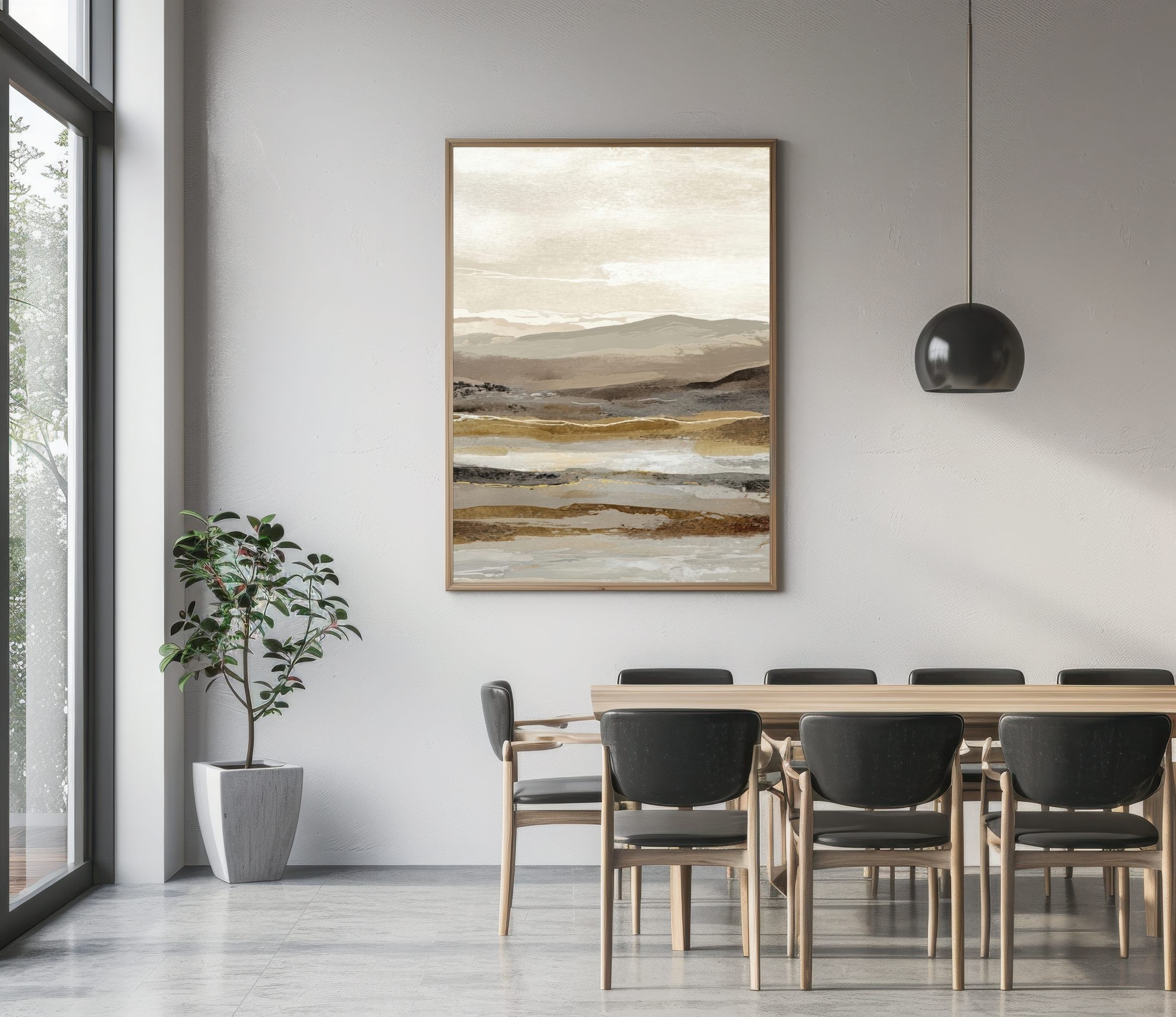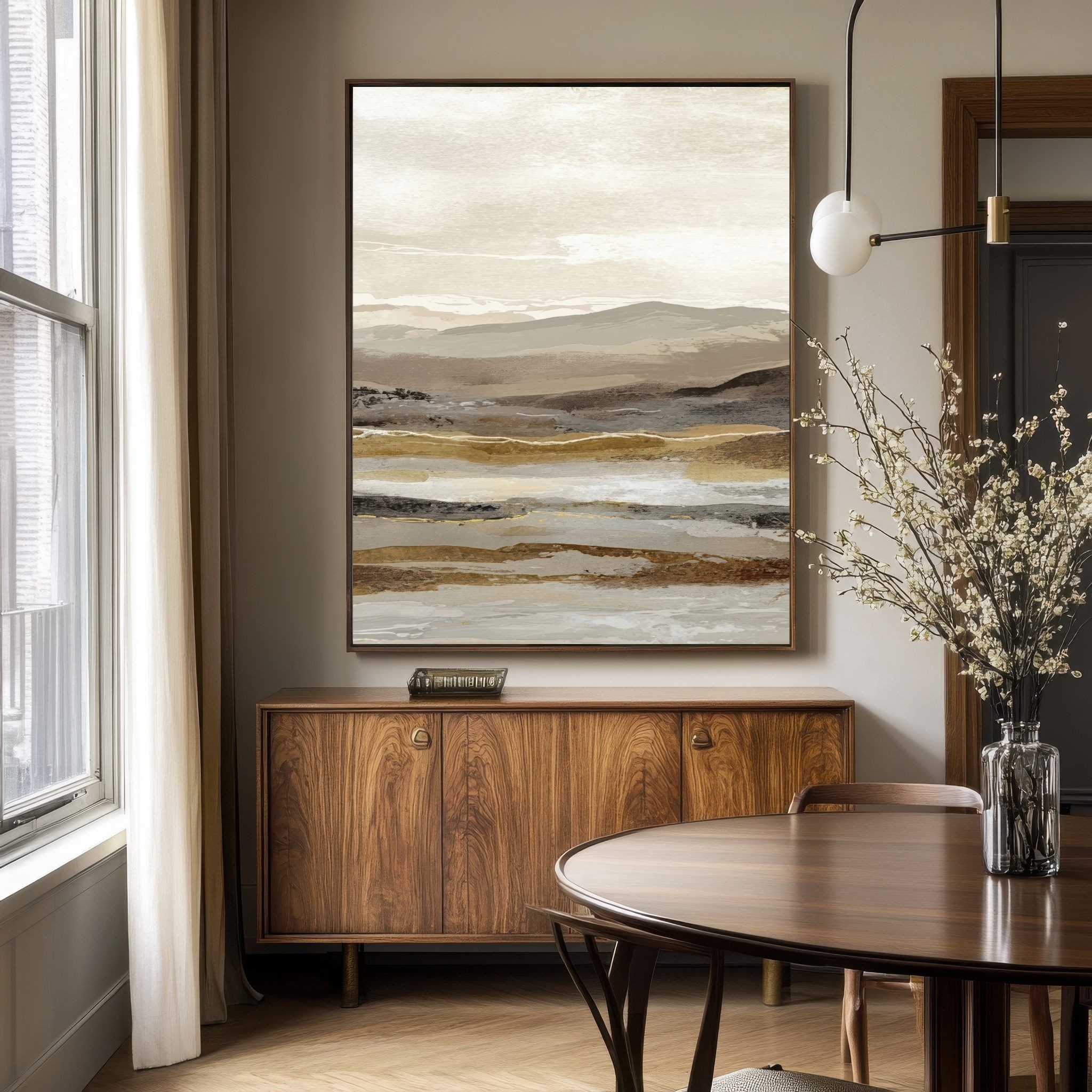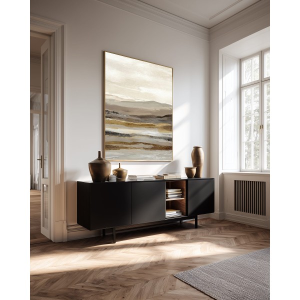 Este cuadro abstracto de paisaje en tonos tierra combina matices de beige, arena y gris con pinceladas sutiles que evocan la serenidad de un horizonte natural. Ideal para interiores modernos o de estilo Japandi, transmite equilibrio y calma. Su composición en capas aporta textura y profundidad visual, perfecta para salones, dormitorios o espacios de trabajo. Una obra contemporánea que captura la esencia de la naturaleza en clave minimalista, creando una atmósfera cálida y elegante en cualquier ambiente decorativo.