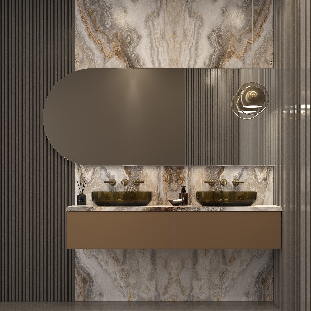 Este espejo sin luz con forma original es mucho más que un simple elemento decorativo de baño. La forma semicircular en uno de los laterales añade originalidad y suavidad visual. Perfecto para baños modernos, elegantes o de estética orgánica, este espejo sin marco se integra armoniosamente en ambientes sofisticados con revestimientos de mármol o piedra natural.