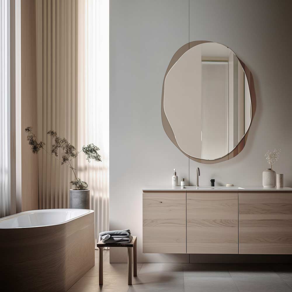 El espejo Osmo está compuesto por dos láminas pegadas entre sí de forma irregular, un espejo clásico plateado y un antisol bronceado, es decir, vidrio de color bronce ahumado. Estos dos materiales, aunque diferentes, crean juntos una armoniosa integridad. Las formas irregulares del espejo son agradables a la vista e introducen ligereza y suavidad en las disposiciones arquitectónicas. Es una propuesta muy interesante para interiores modernos. El espejo Osmo en su versión bronceada se adapta perfectamente a ambientes luminosos. Decorará espléndidamente el baño, el dormitorio o la sala de estar.