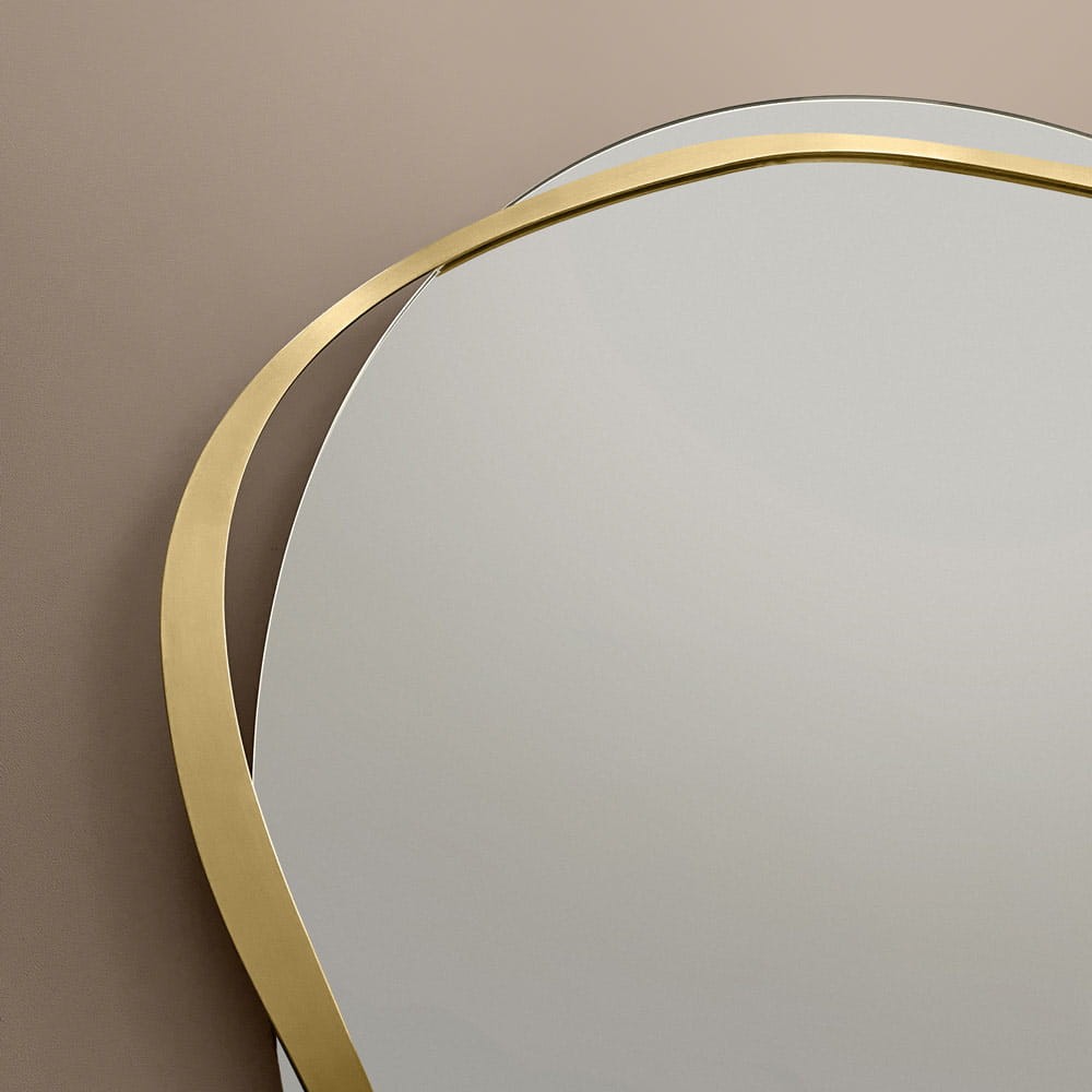 El espejo decorativo Banda, ¿es redondo o quizás más bien irregular? Es difícil decirlo, ya que tiene ambas características. El marco irregular de latón parece contradecir la forma del propio espejo, añadiéndole un carácter decorativo. El latón natural, con su cálido tono dorado, introduce una nota de elegancia y belleza atemporal en el interior. La forma orgánica del marco encaja perfectamente con las tendencias actuales, subrayando al mismo tiempo la individualidad y sofisticación de cualquier espacio.