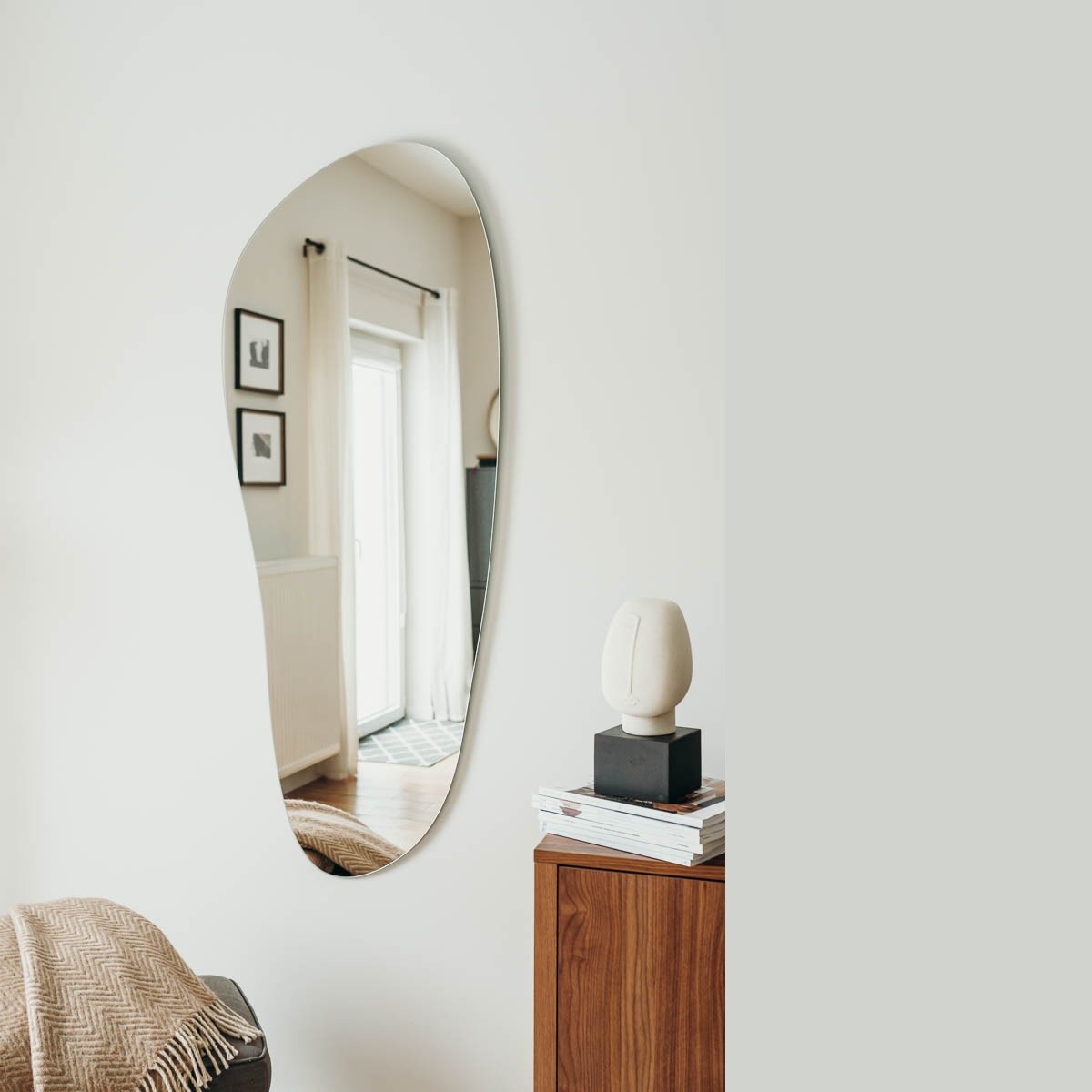 Este espejo irregular vertical sin marco es ideal para quienes buscan un diseño orgánico y contemporáneo. Su silueta fluida y asimétrica rompe con lo tradicional, aportando dinamismo y personalidad al espacio. Perfecto como espejo de cuerpo entero en dormitorios, vestidores o recibidores, amplía la luz y genera sensación de amplitud. Al no tener marco, transmite una estética limpia y ligera, fácil de integrar en estilos modernos, nórdicos o minimalistas. Fabricado con materiales de alta calidad, ofrece un reflejo nítido y duradero. Un espejo decorativo exclusivo.