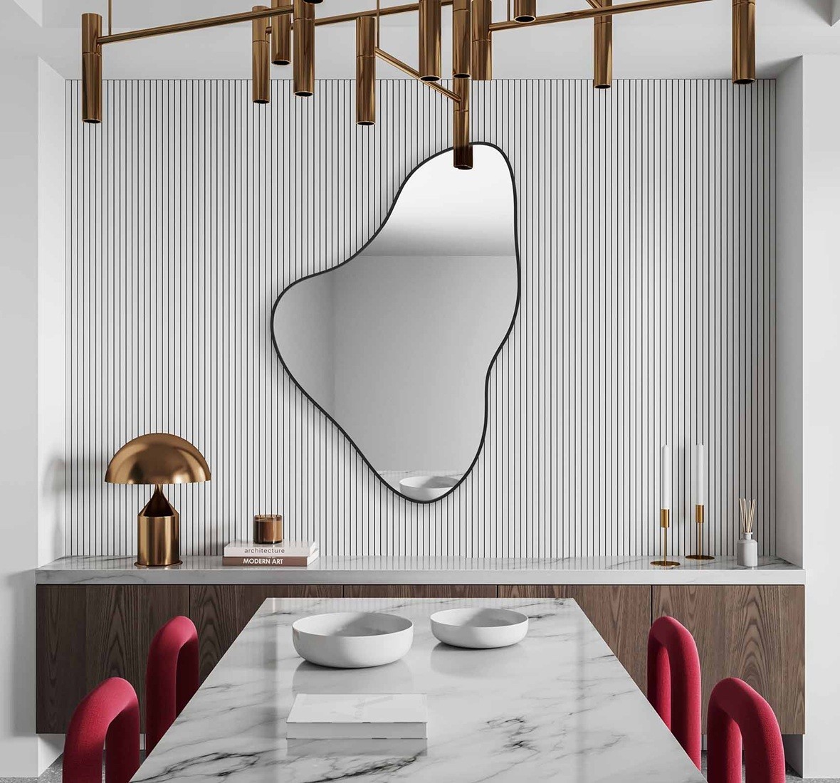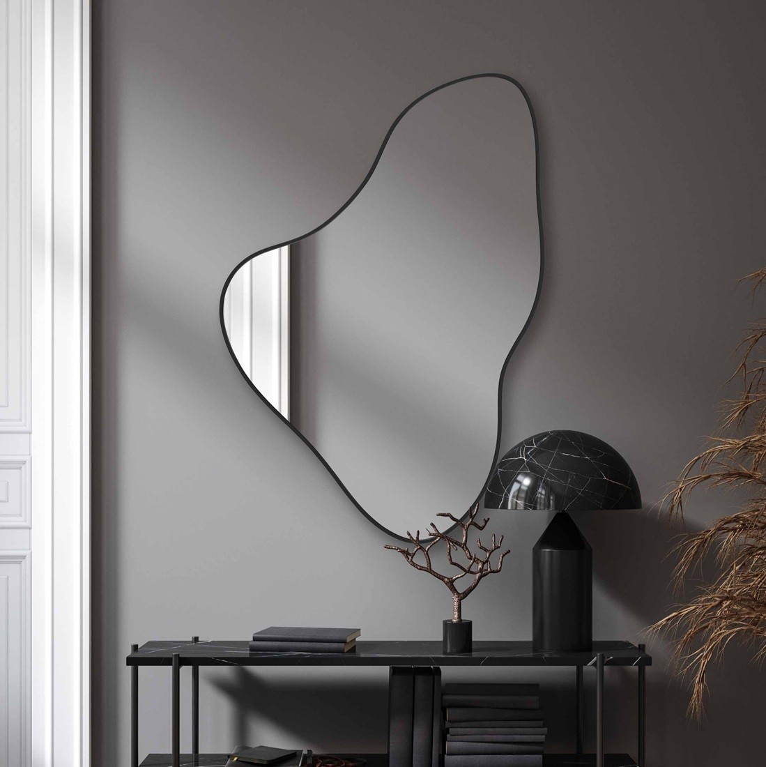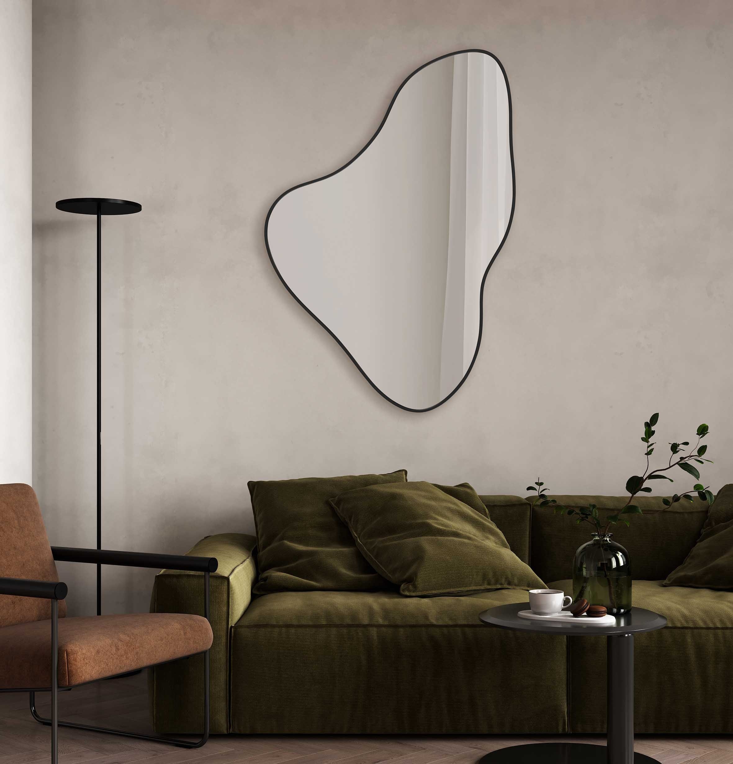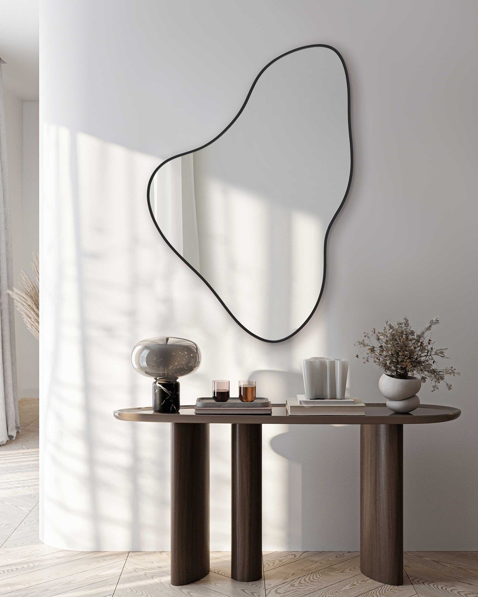 Espejo Orgánico con Marco Negro – Elegancia y Movimiento para tu Recibidor