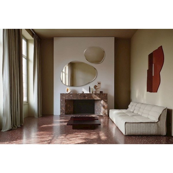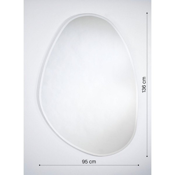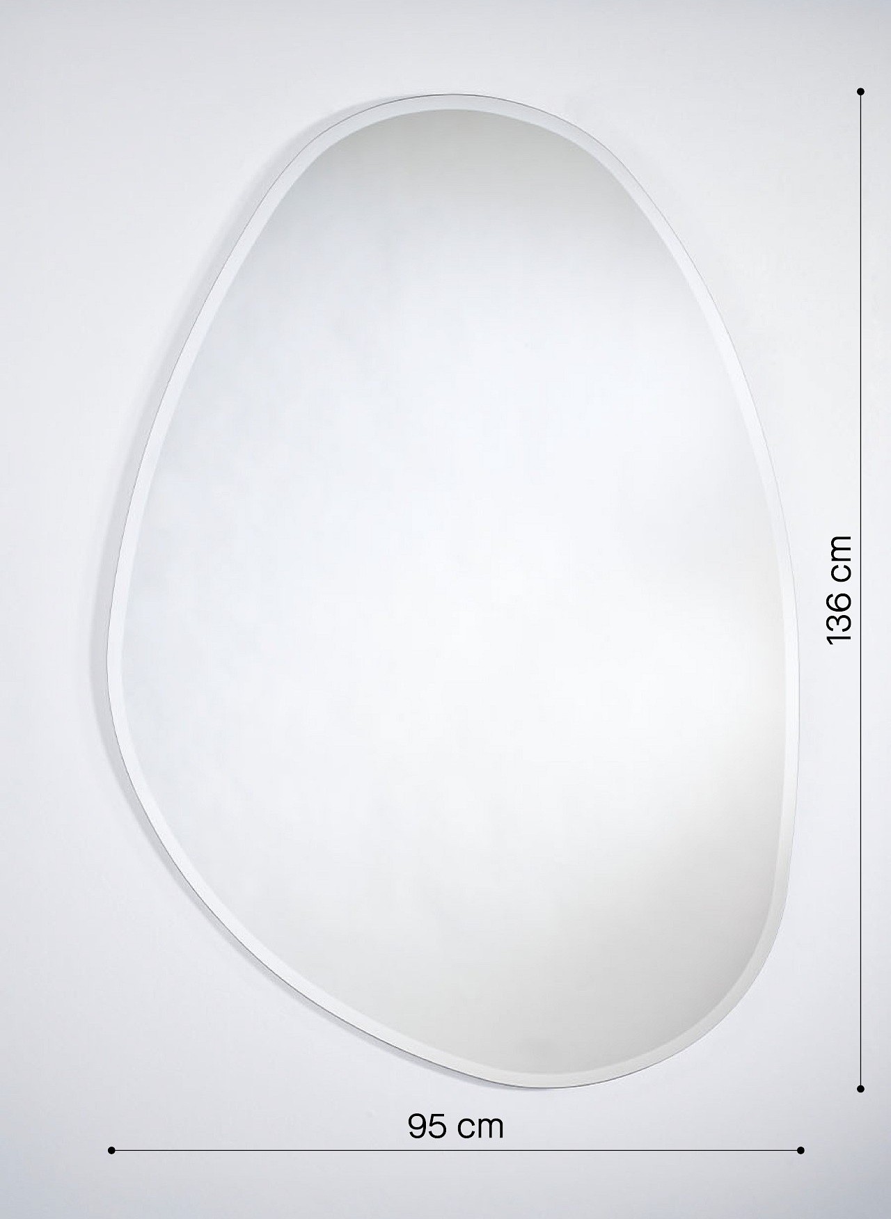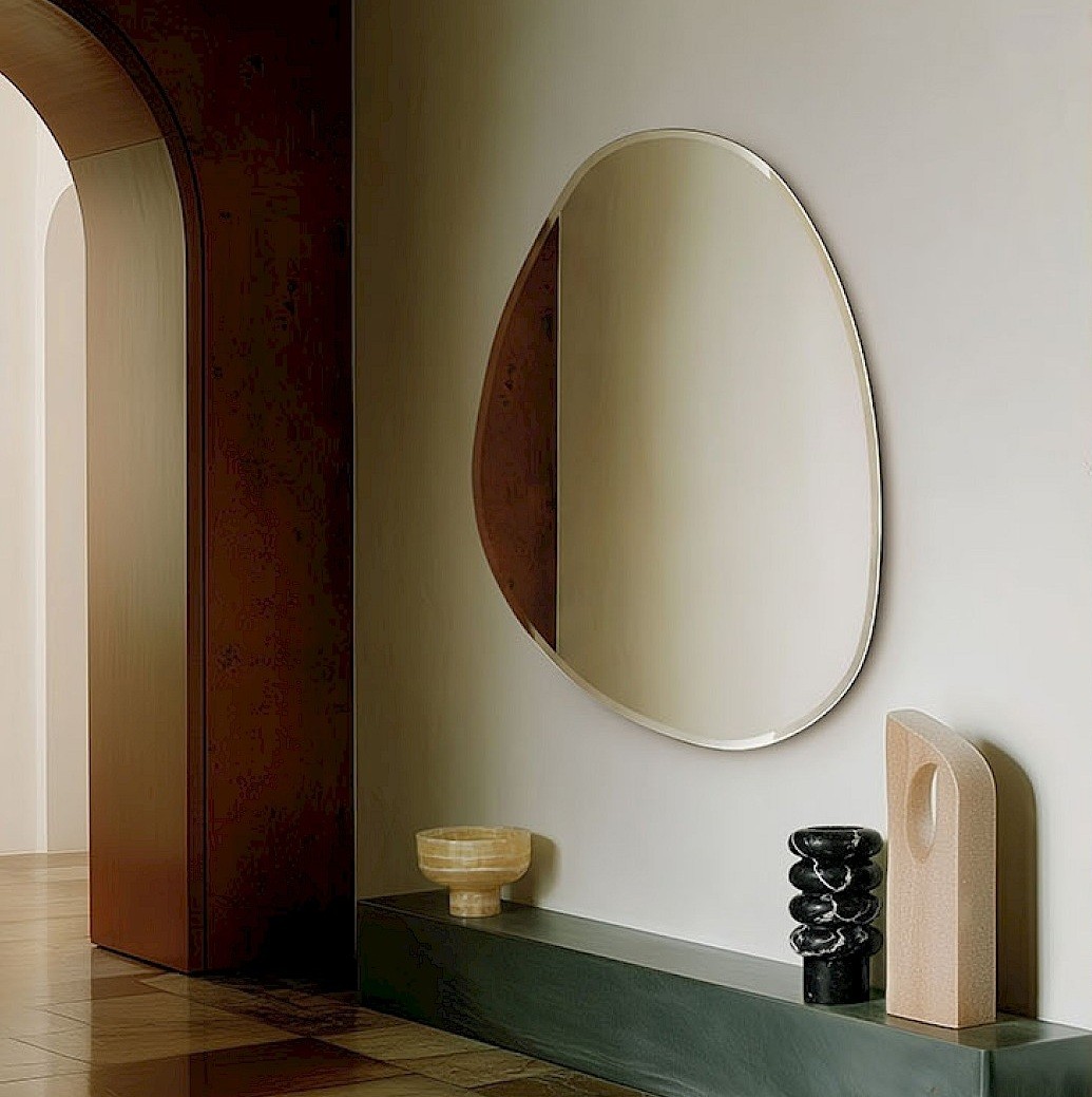 Este espejo asimétrico biselado de gran formato destaca por su forma orgánica y su elegante bisel perimetral de 2 cm, que suaviza el contorno irregular y aporta profundidad visual. Su diseño fluido y equilibrado refleja la luz de forma natural, ampliando el espacio y creando una atmósfera serena y sofisticada.