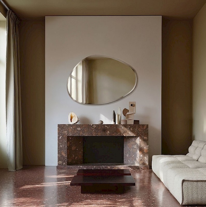 Ideal como espejo decorativo para recibidor, pasillo o salón, se integra perfectamente en interiores contemporáneos, minimalistas o de inspiración orgánica, convirtiéndose en un elemento escultórico de gran impacto visual.
