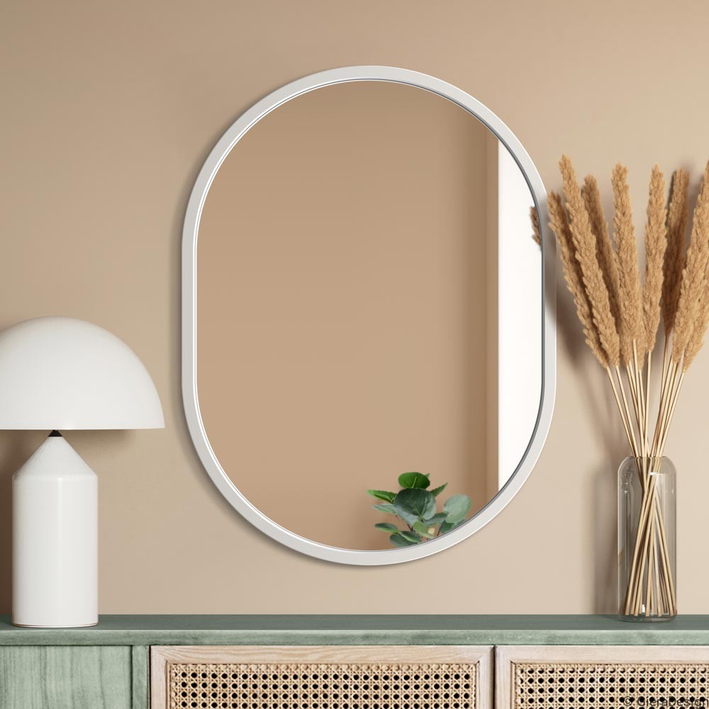 Este espejo ovalado con marco blanco es una pieza versátil y luminosa que se adapta tanto a recibidores modernos como a dormitorios con estilo escandinavo. Su forma orgánica suaviza el espacio y el marco blanco mate aporta un toque limpio, fresco y atemporal. Perfecto para reflejar la luz natural y ampliar visualmente el entorno, combina con muebles de madera clara, ratán o detalles en color pastel. Ideal para quienes buscan un espejo decorativo funcional, elegante y adaptable a cualquier estilo de interiorismo actual.