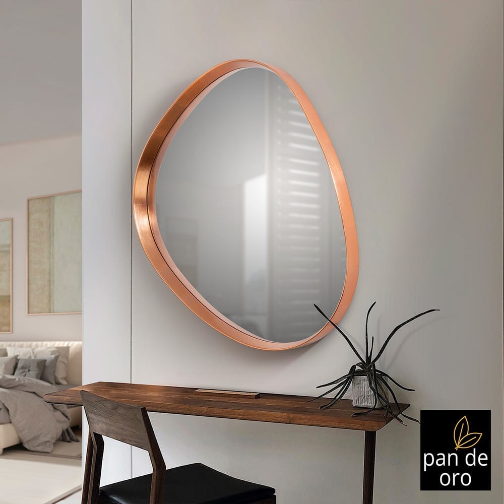El espejo asimétrico en oro rosa con acabado de pan de oro es una pieza de gran impacto visual, perfecta para quienes buscan un toque de distinción en su hogar. Su diseño irregular aporta movimiento y originalidad, mientras que el marco en oro rosa transmite calidez y elegancia. Ideal para decorar recibidores, dormitorios o salones con estilo moderno y contemporáneo, este espejo no solo amplía la luz del espacio, sino que se convierte en un auténtico elemento decorativo lleno de personalidad.