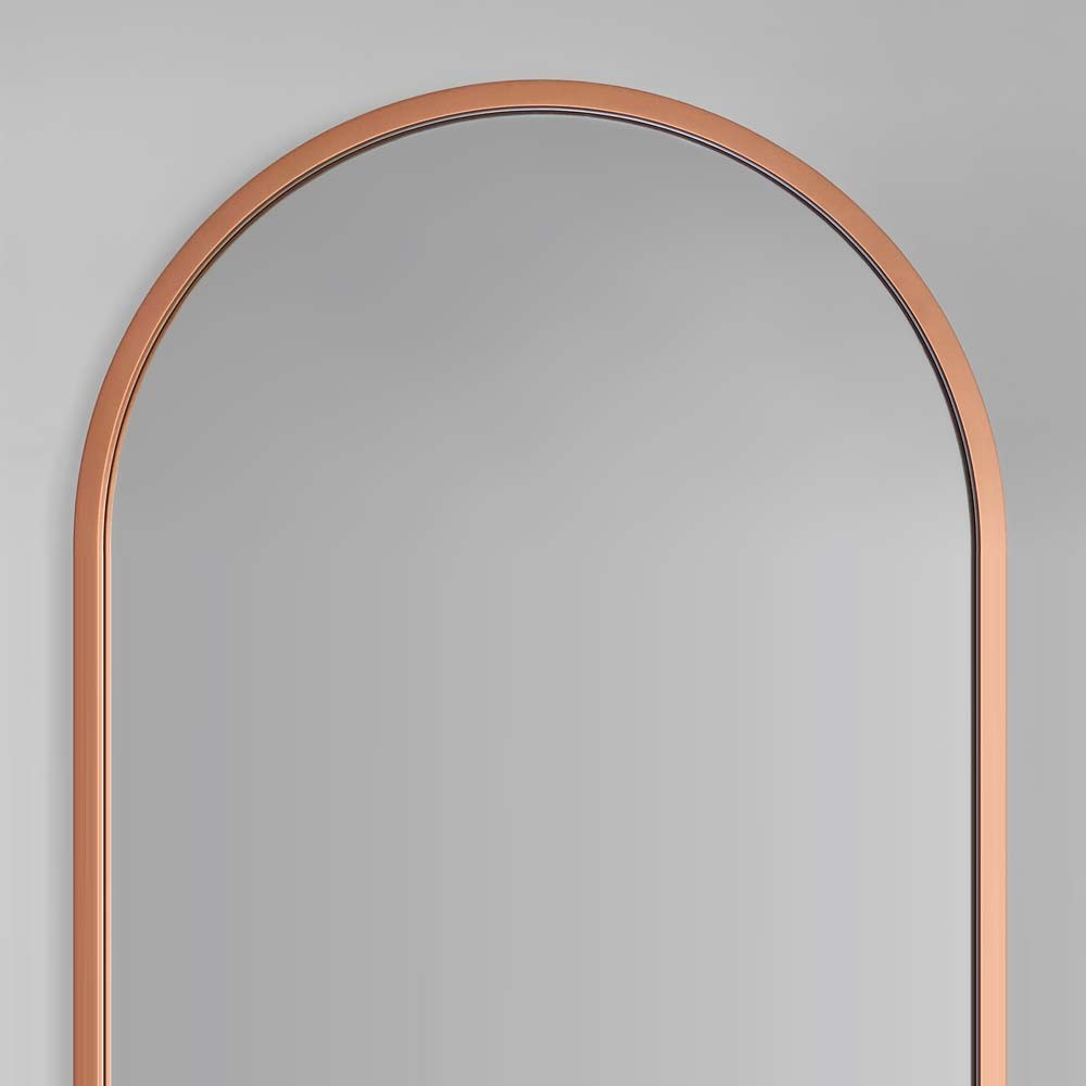 Espejo ovalado de cuerpo entero con marco cobrizo, ideal para dormitorios, vestidores, recibidores o pasillos con estilo contemporáneo, industrial o clásico renovado. Su forma vertical estiliza visualmente el ambiente, mientras el acabado cobrizo añade calidez, sofisticación y un sutil toque metálico que realza la decoración. Perfecto para combinar con tonos tierra, madera natural o textiles suaves. Este espejo decorativo con marco cobrizo es una pieza funcional y elegante para proyectos de interiorismo que buscan carácter, armonía y modernidad con un aire acogedor.