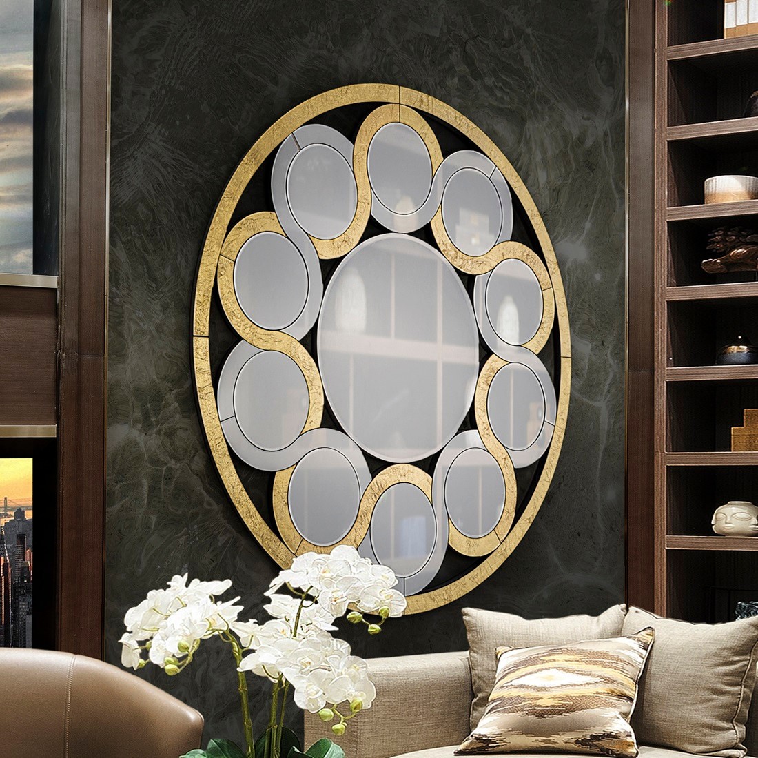 Transforma tu salón comedor en un oasis de elegancia con el espejo Zendaya. Este deslumbrante espejo es una pieza central imprescindible para cualquier espacio que busque un toque de sofisticación. Su diseño único combina la belleza clásica de las formas redondas con el lujo moderno del pan de oro, añadiendo un toque de opulencia a tu hogar.
