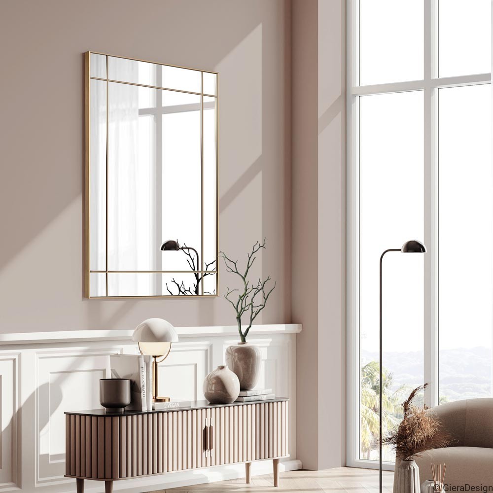 Precioso espejo decorativo fabricado en cristal OptiWhite con marco de latón dorado. Es una pieza elegante que añadirá glamour y clase a cualquier estancia. Ideal para interiores con glamour, estilo clásico y neoyorquino. Este espectacular espejo sin duda complementará cualquier ambiente con su bello aspecto atemporal.
