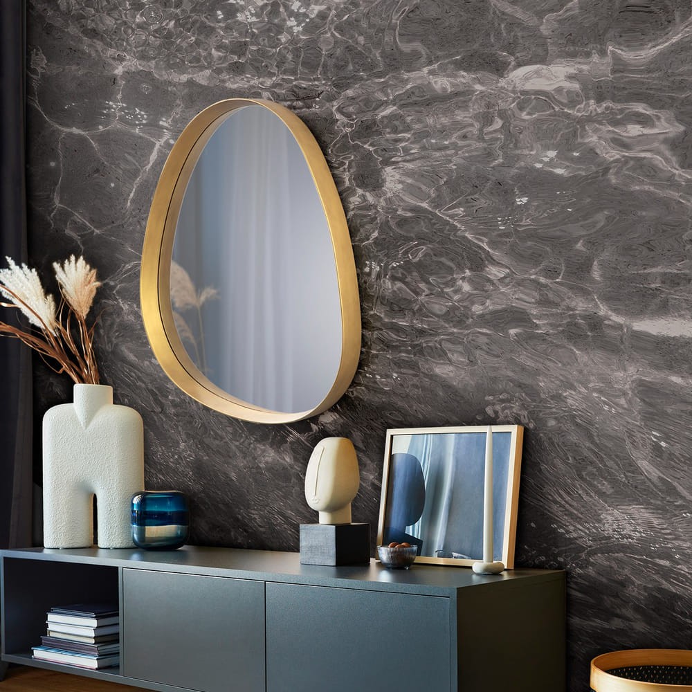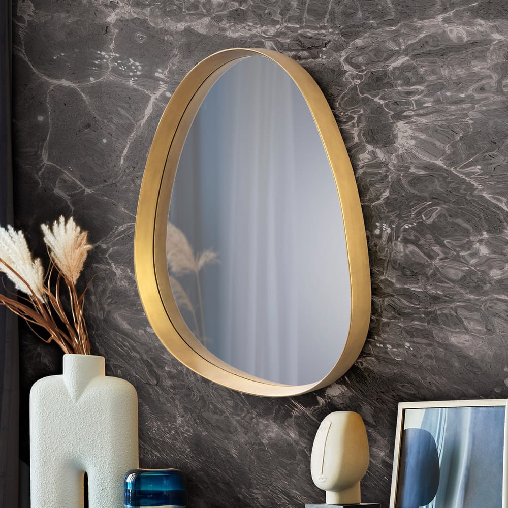 Este espejo asimétrico con marco dorado es la pieza ideal para aportar modernidad y sofisticación a cualquier espacio. Su forma orgánica rompe con lo convencional, creando un punto focal único en salones, recibidores o dormitorios. El acabado en oro realza la elegancia y combina fácilmente con estilos contemporáneos, nórdicos o art déco. Fabricado con materiales de alta calidad, ofrece un reflejo nítido y duradero. Un complemento perfecto para quienes buscan un espejo decorativo exclusivo, capaz de transformar la pared en un detalle lleno de personalidad.