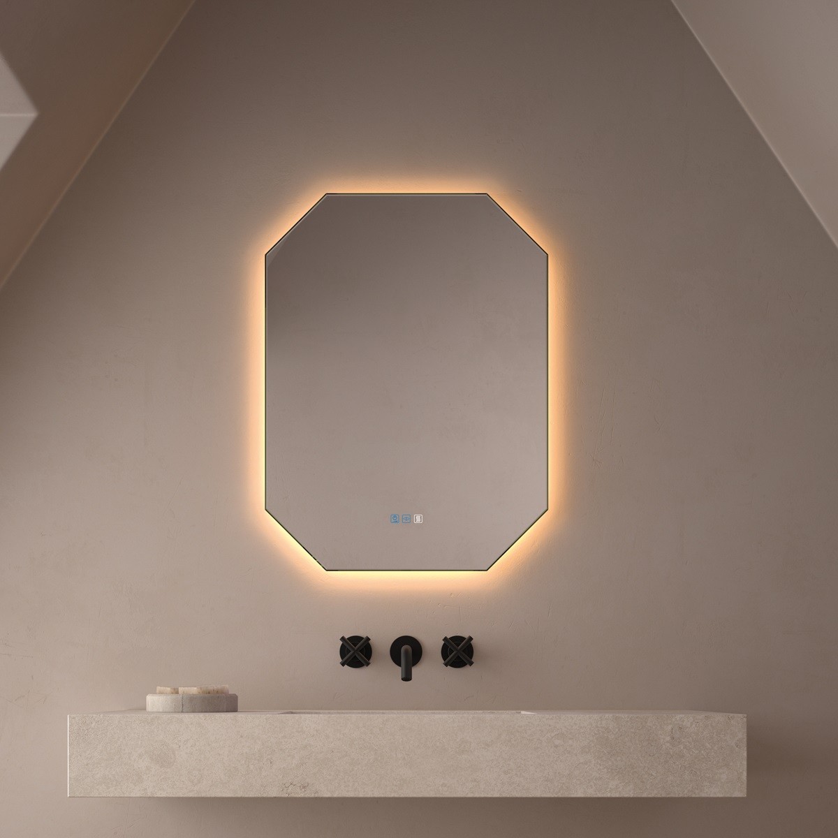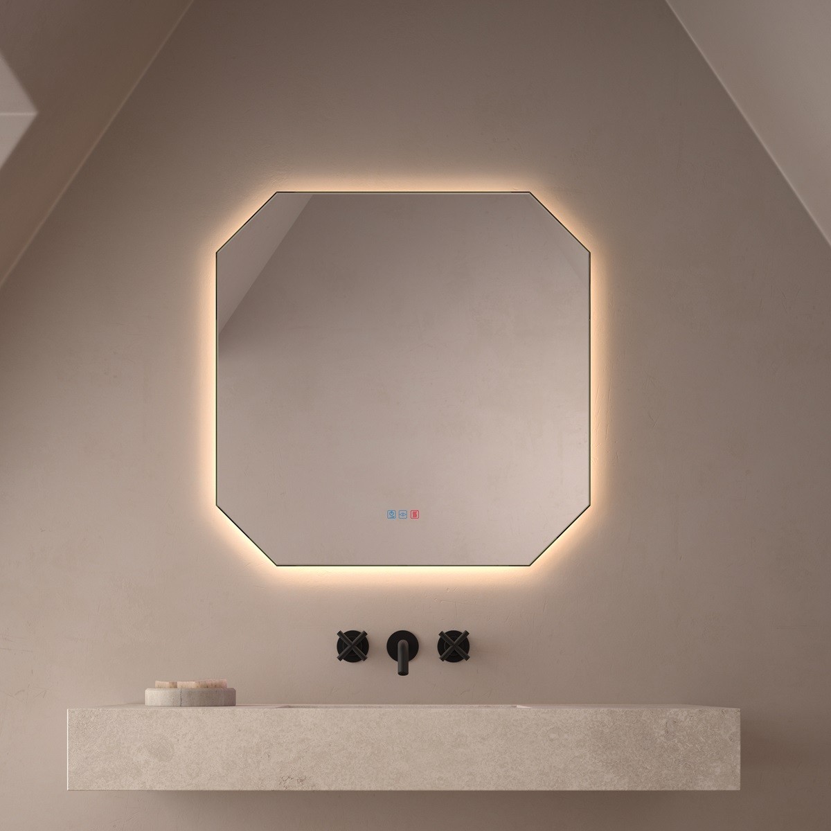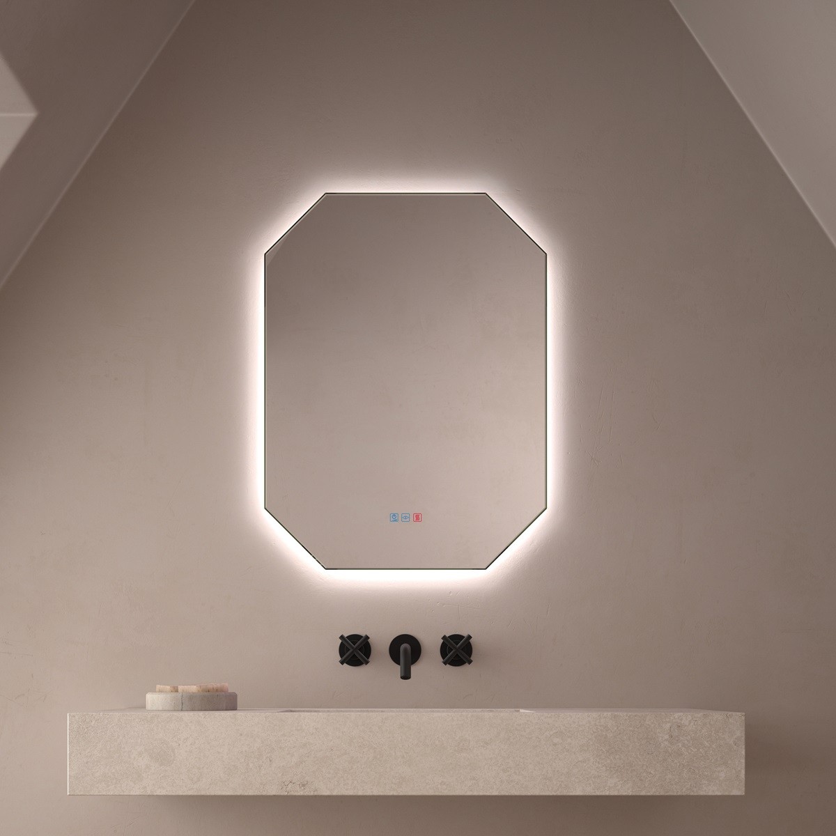 Espejo retroiluminado con forma octogonal, ideal para dar personalidad a tu baño. Su diseño geométrico y elegante aporta un toque moderno. La luz LED perimetral crea una iluminación suave y envolvente, perfecta para zonas de relax. Cuenta con sistema antivaho y encendido táctil, combinando estilo y funcionalidad. Este espejo de baño decorativo es ideal para quienes buscan un elemento diferenciador que destaque en proyectos de decoración contemporánea. Perfecto para hoteles, hogares o spas que desean incorporar un espejo moderno con tecnología LED. Una pieza única y funcional.