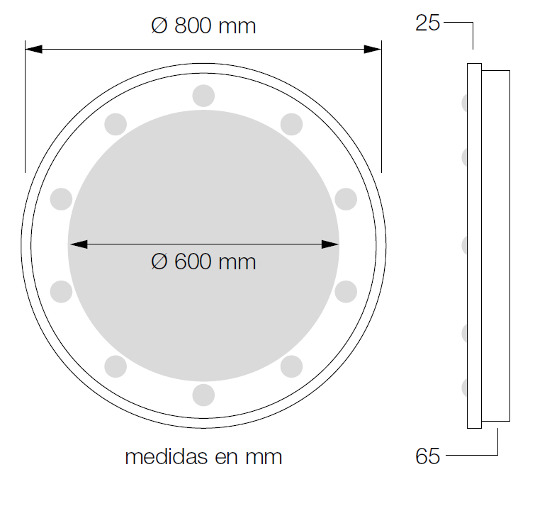 Diámetro total: 80 cm, (luna: 60cm).