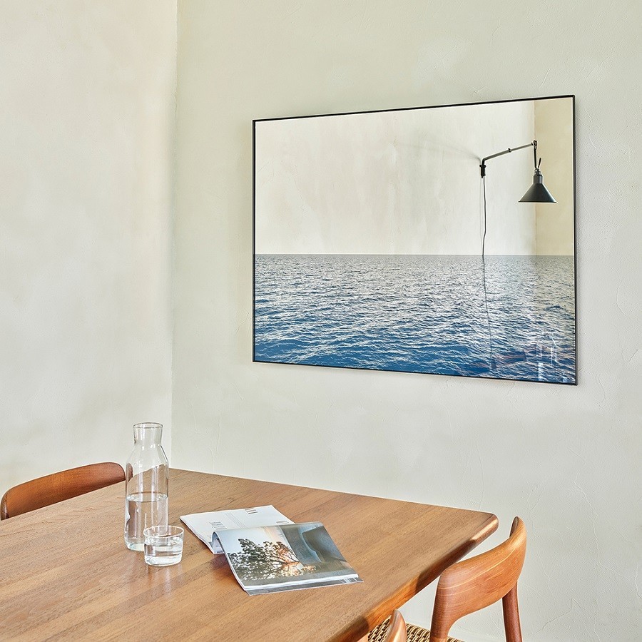 Lleva el mar a tu hogar con MARO. Dependiendo de cómo se refleje la luz en este impresionante espejo, cambiará de color al igual que lo hace el mar. Este espejo hará que cualquiera sueñe despierto. El Maro abrirá su interior como si fuera una ventana al exterior.