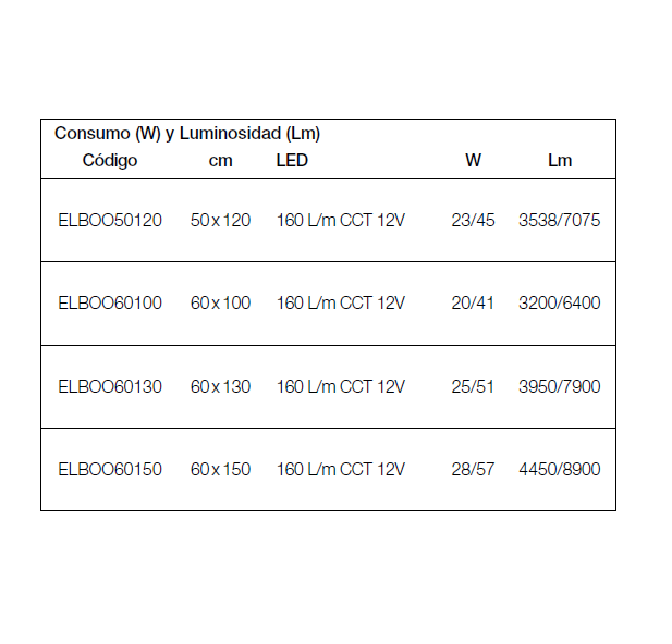 - Colores de iluminación a elegir: Luz fría: 5.700ºK, Luz neutra: 4.000ºK, Luz cálida: 3.000ºK.